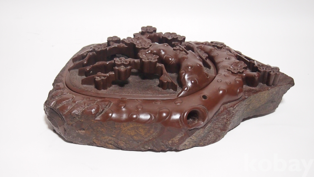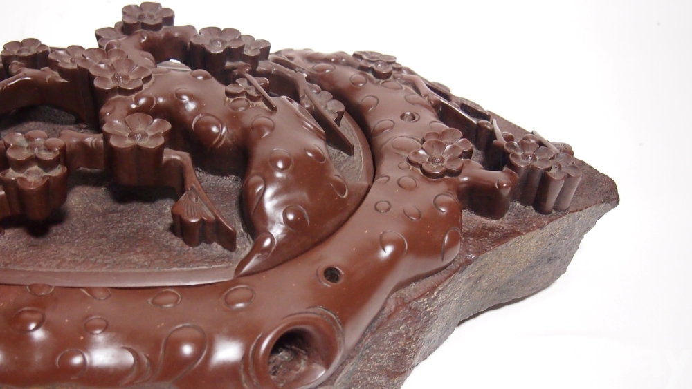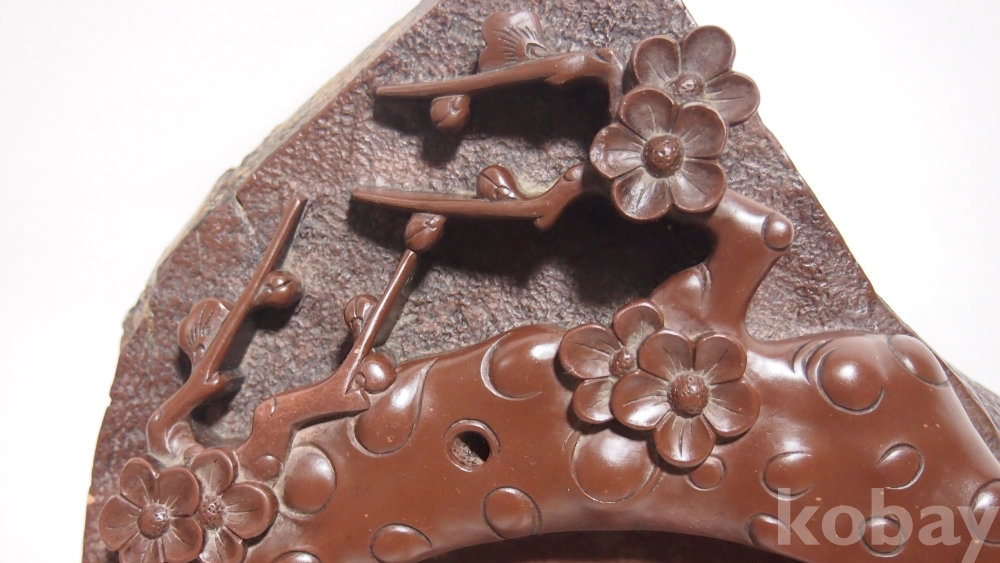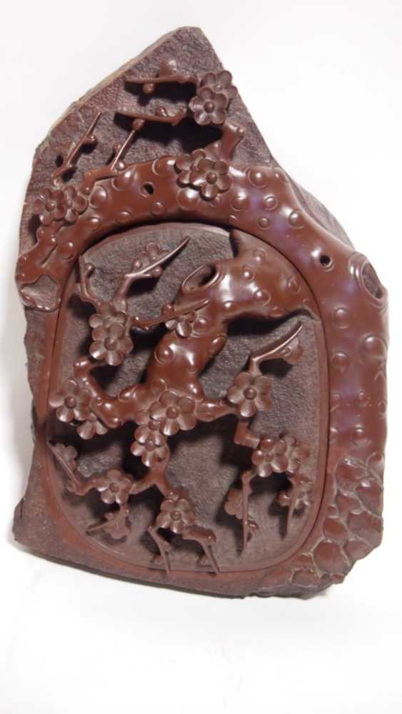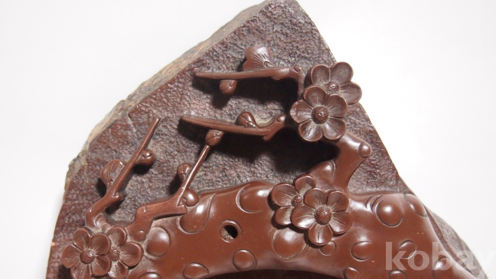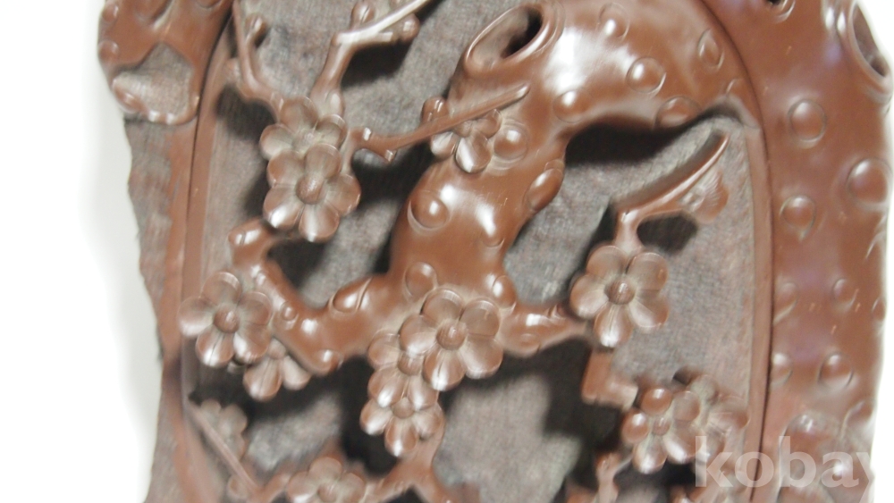 상품명 | (미사용 / 대형) 石공예품 / 매화문 음양각 투각 '단양 자색 벼루' | ||