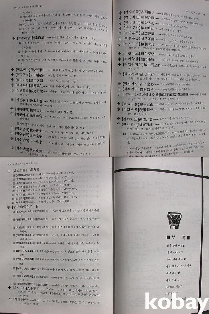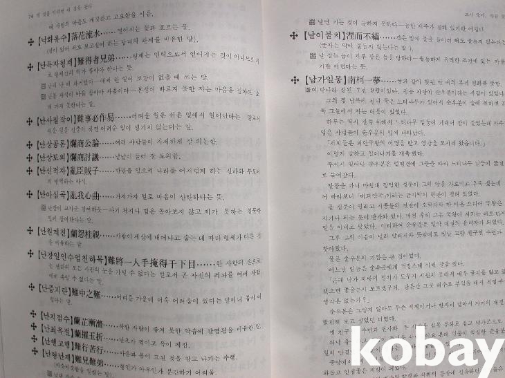 선명한 사진 식자로 쉽게 보고 이해하기 쉽게 편집하였다는 머리말이 있다. 가나다 순으로 한글음을 먼저 달고 한자 성어 원문을 적었으며 뒤의 풀이보다 글자가 금세 눈에 띄도록 큰 글자로 썼다. 일화가 있는 것은 풀이에 소개하였고, 가나다 순에 맞게 속담들도 끼워 열거하며 소개하였다. 부록은 왕실 세계표나 가정의례준칙 등을 실어 참조하도록 하였다.