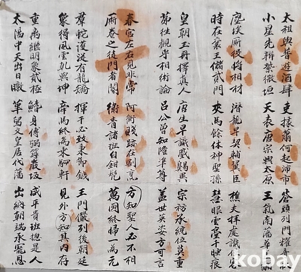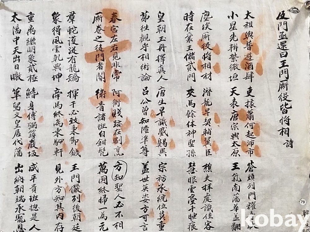 구한말 "한재수" 수결이 보이는 장지바닥에 시문(詩問)이 가득찬 서예품입니다,