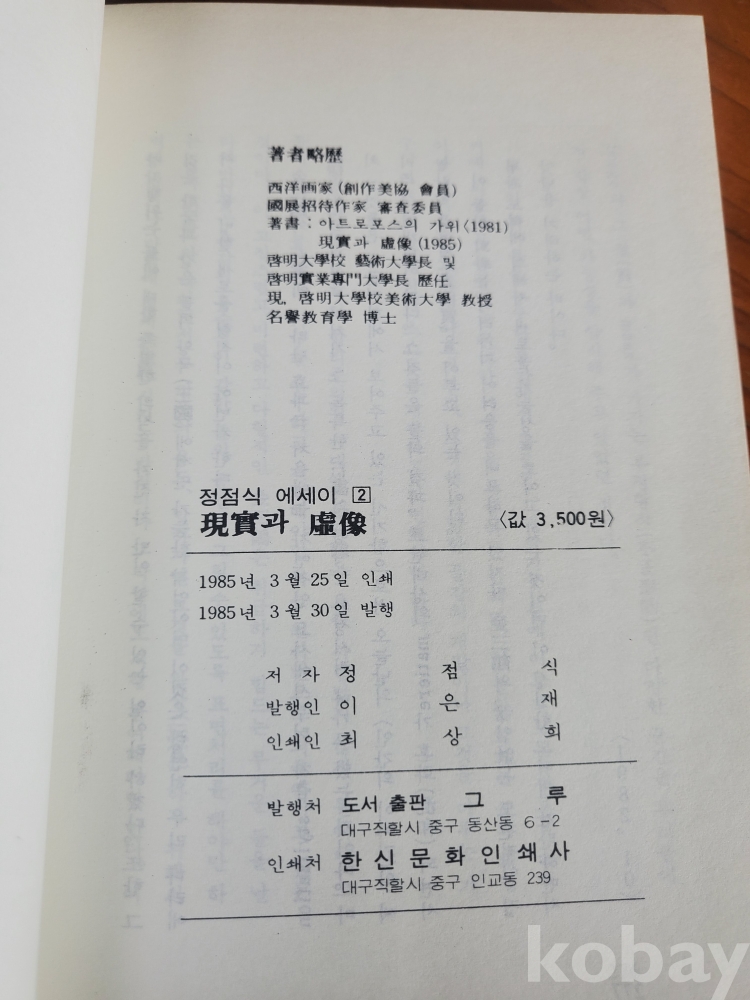 1. 현실과 허상, 정점식, 도서출판 그루, 1985년, 277쪽, 상태 상, 사진 참조