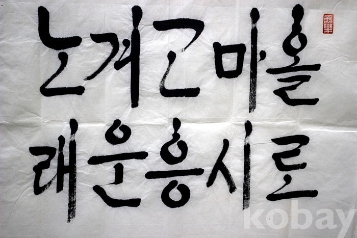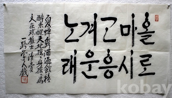 一路學人(일로학인) 김종기의 한글 서예작품 (1) - 홀로 마시고 흥겨운 노래..