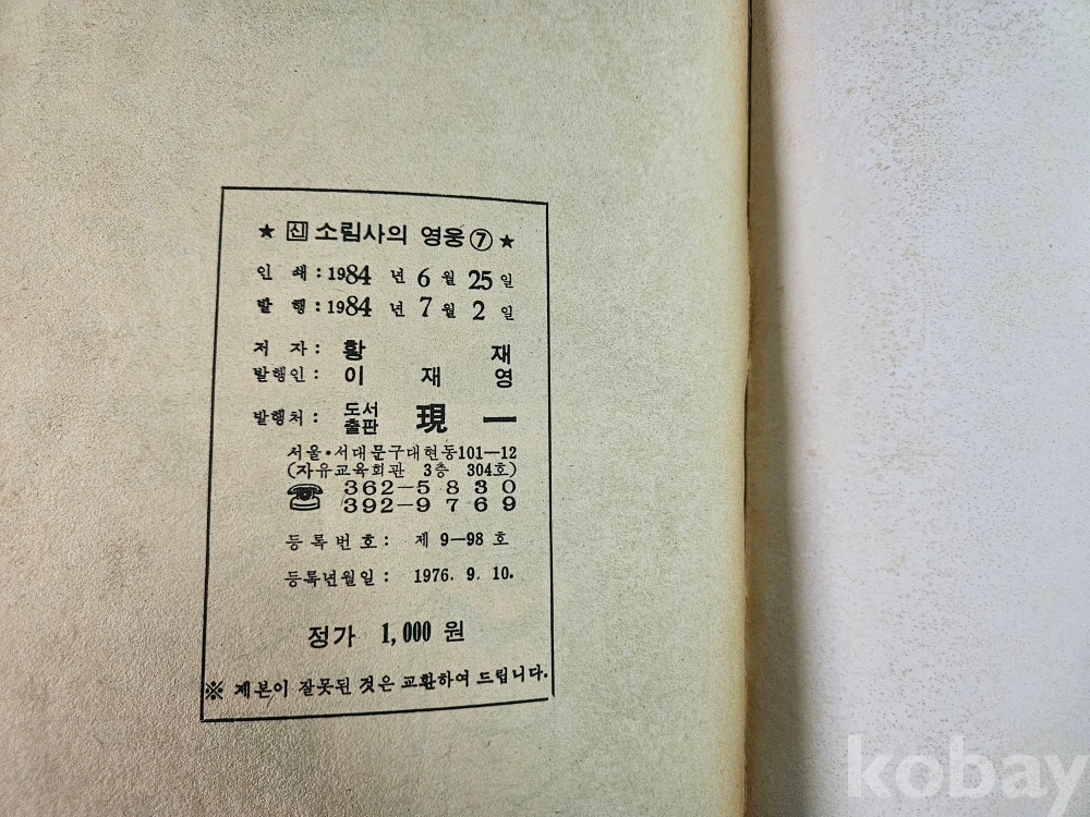 1] 품명 : 신 소림사의 영웅 7 - 황재 (글.그림)
