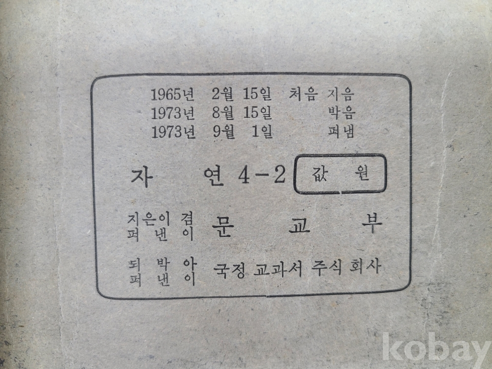 [교과서] 자연4-2*1973년/문교부 발행,낙서, 물먹음,찢어진부분 있음
