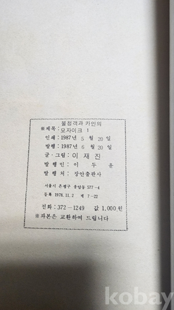 불청객과 카인의 모자이크 1~7완결, 1987년, 이재진 그림