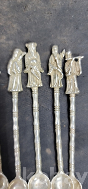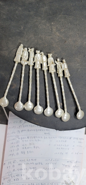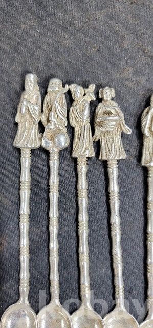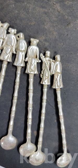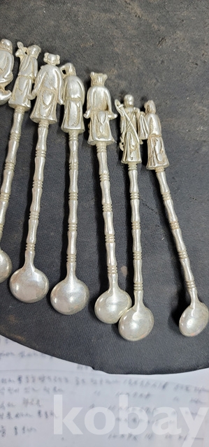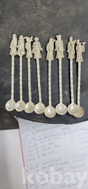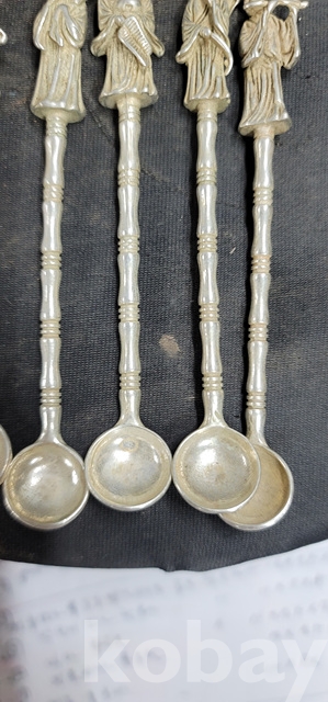 d-53.은도금된 팔신선도 약숫가락 8개일괄