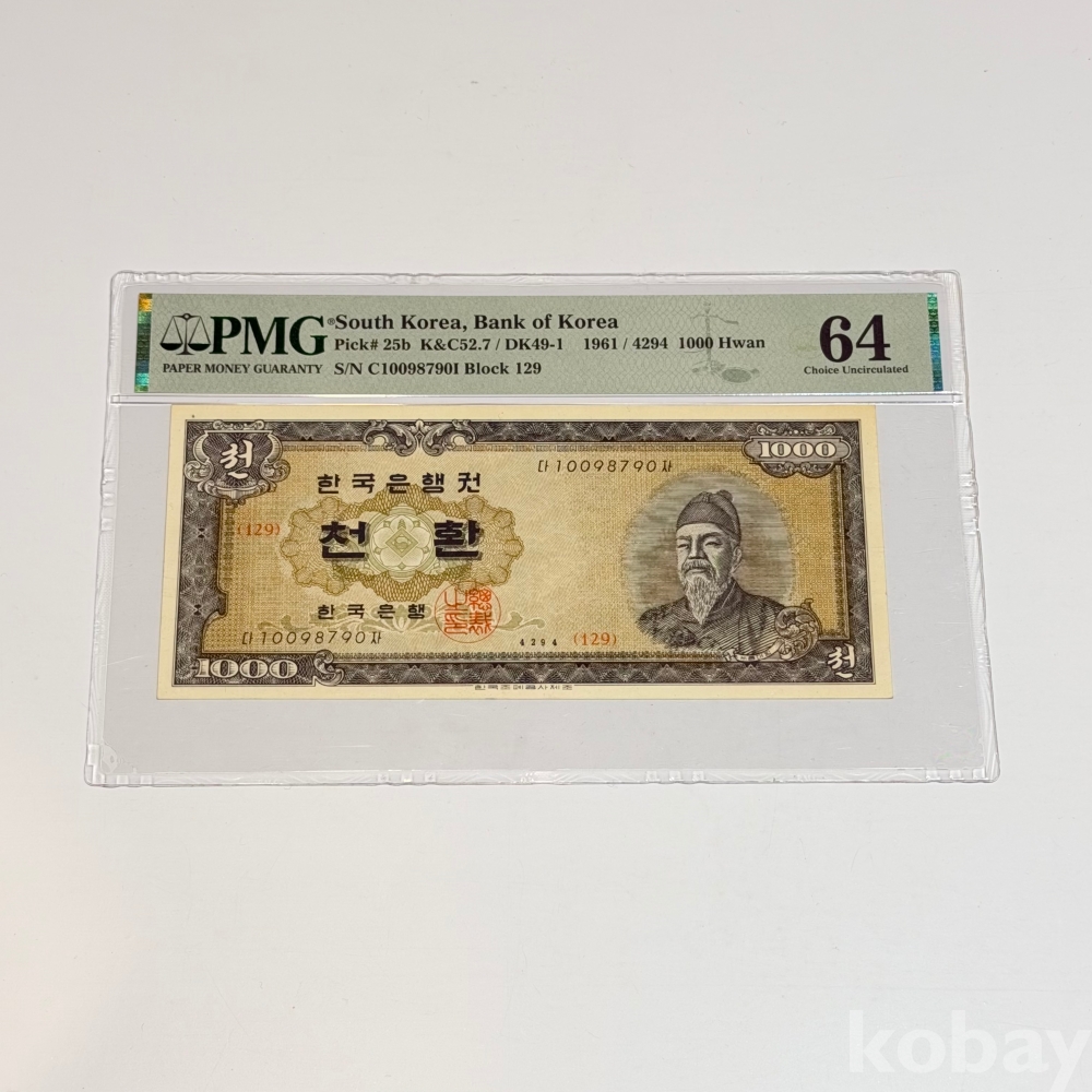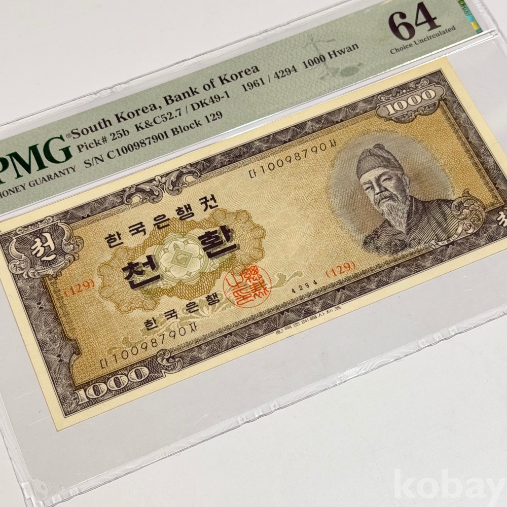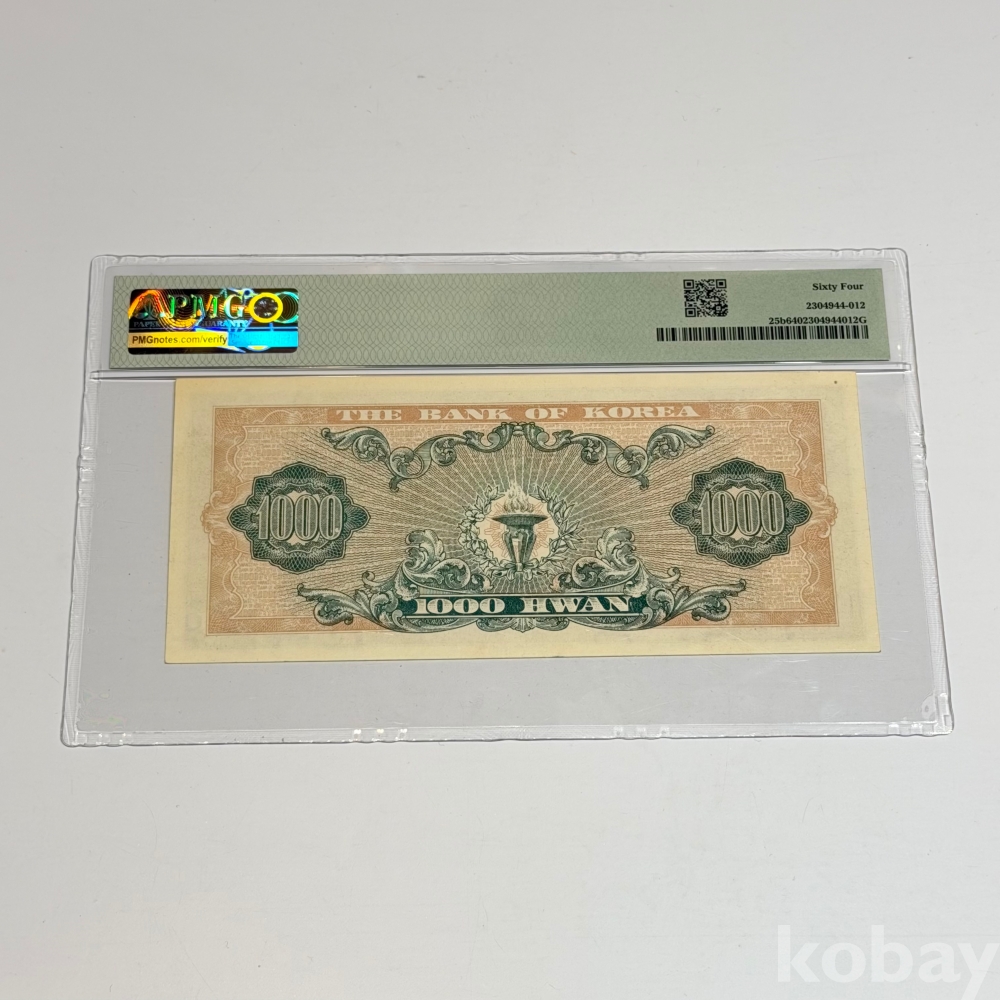 한국은행 세종 1000환/ 천환 PMG 64등급