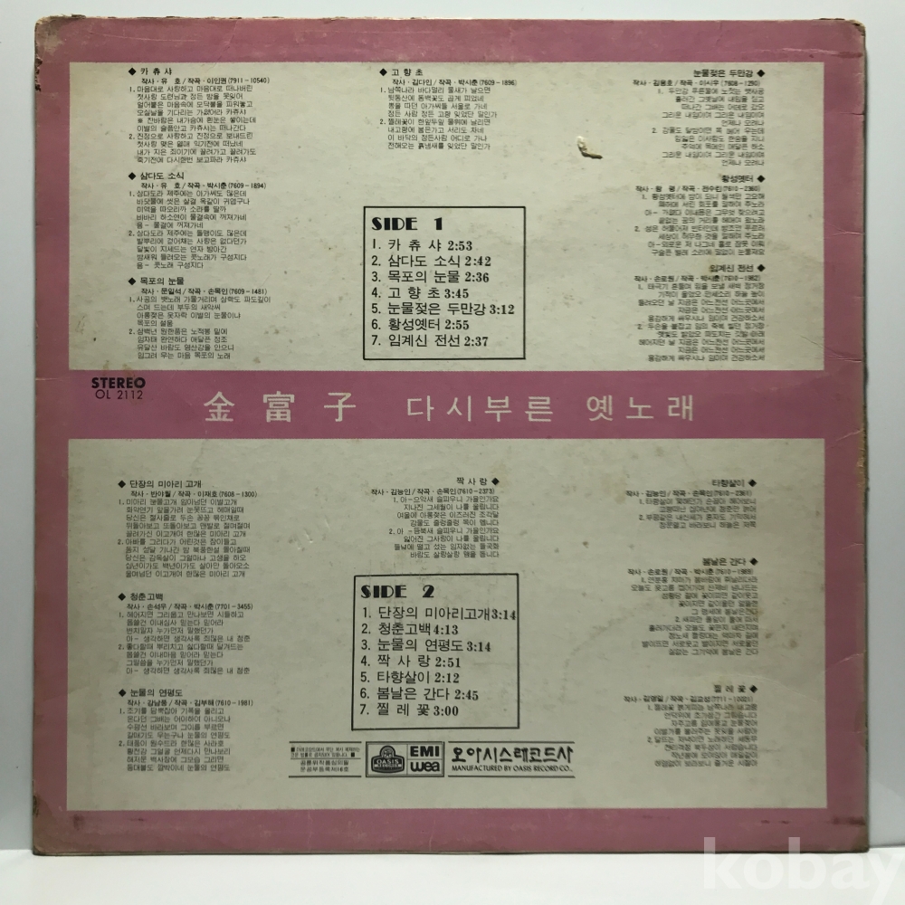 LP 160-79 김부자 다시부른 옛노래 - 카츄샤 80 오아시스 자켓 EX- 알판 VG+