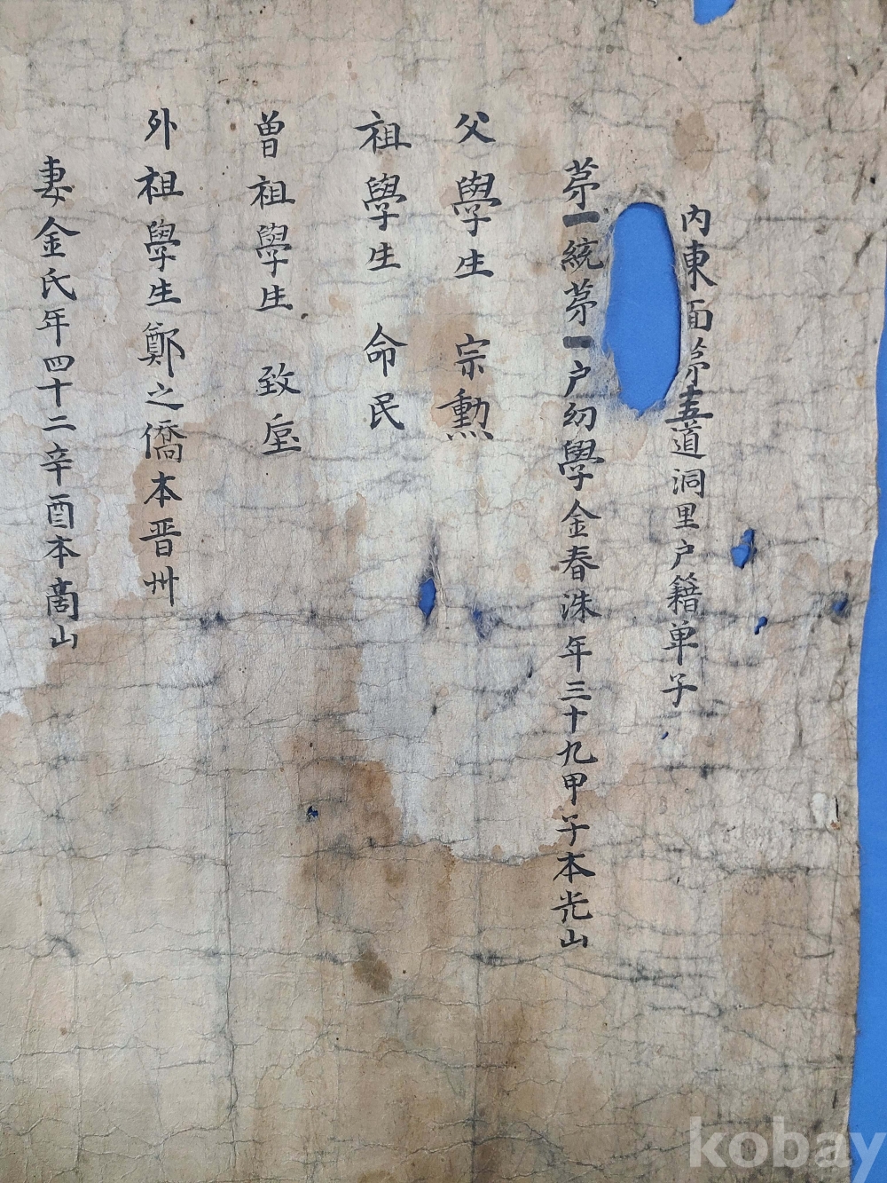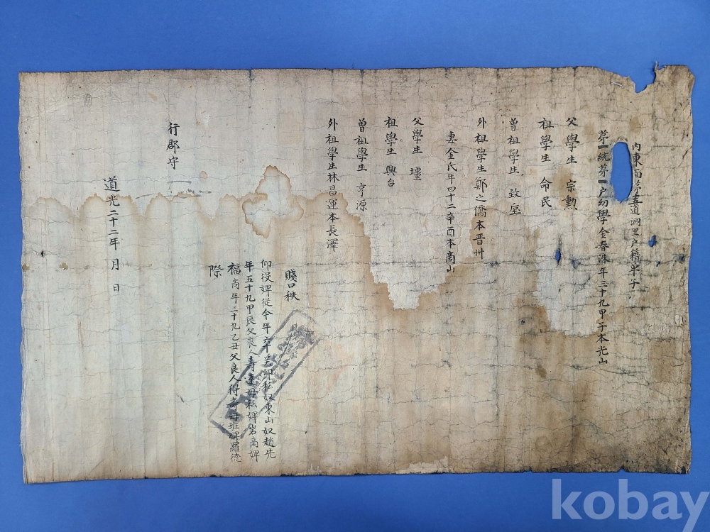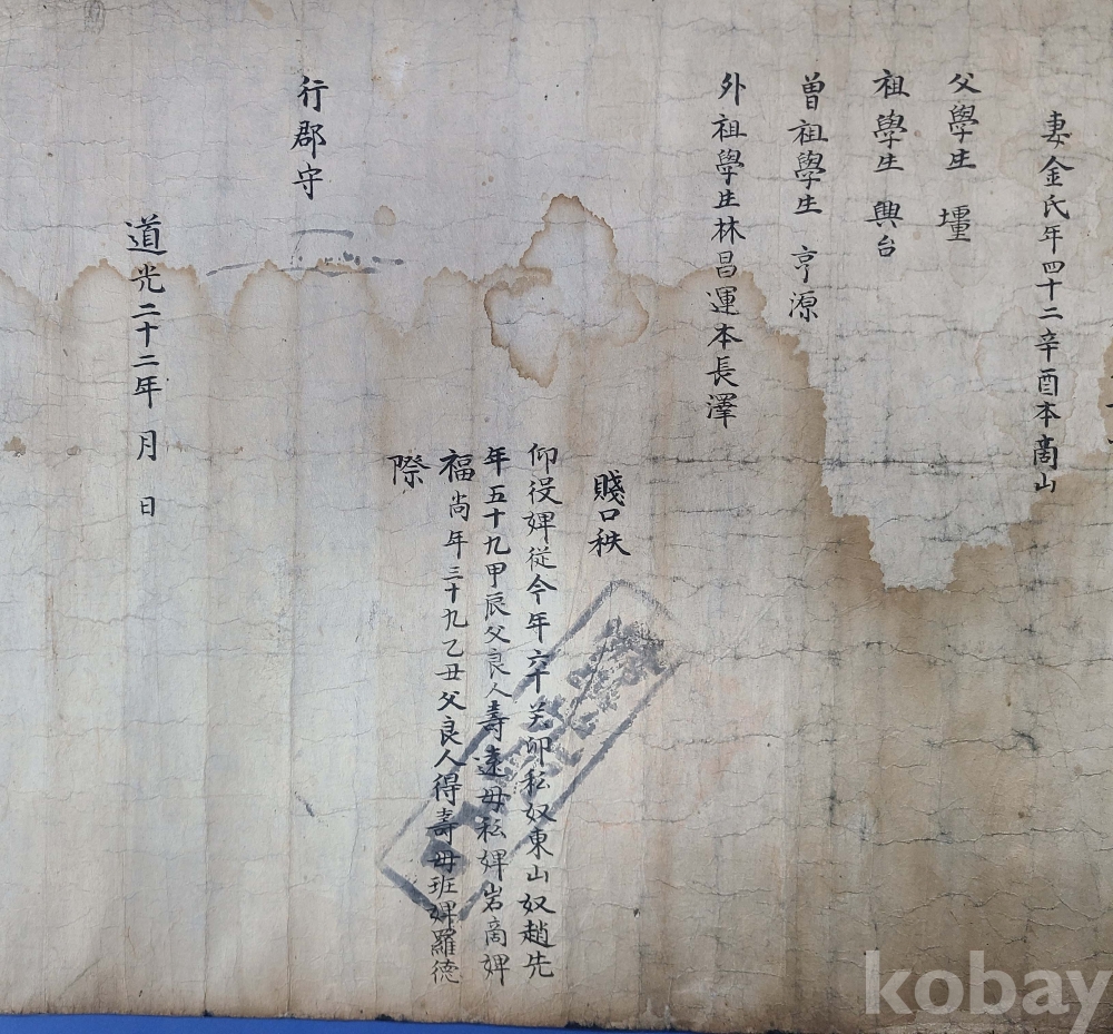 道光22년(1842년) 內東面 戶籍單子/일부 탈락