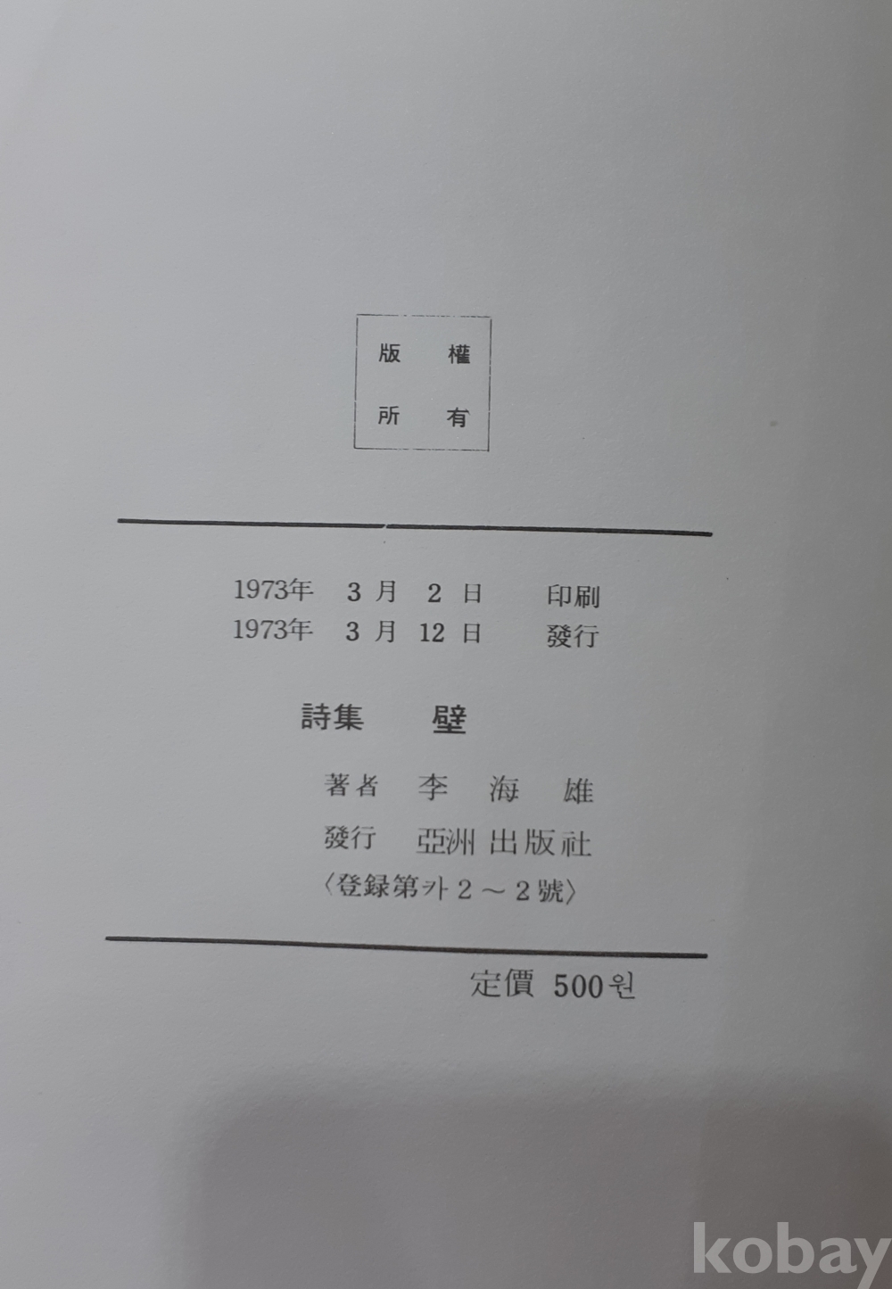 이해웅 시집 壁 벽 초판본 저자 싸인본