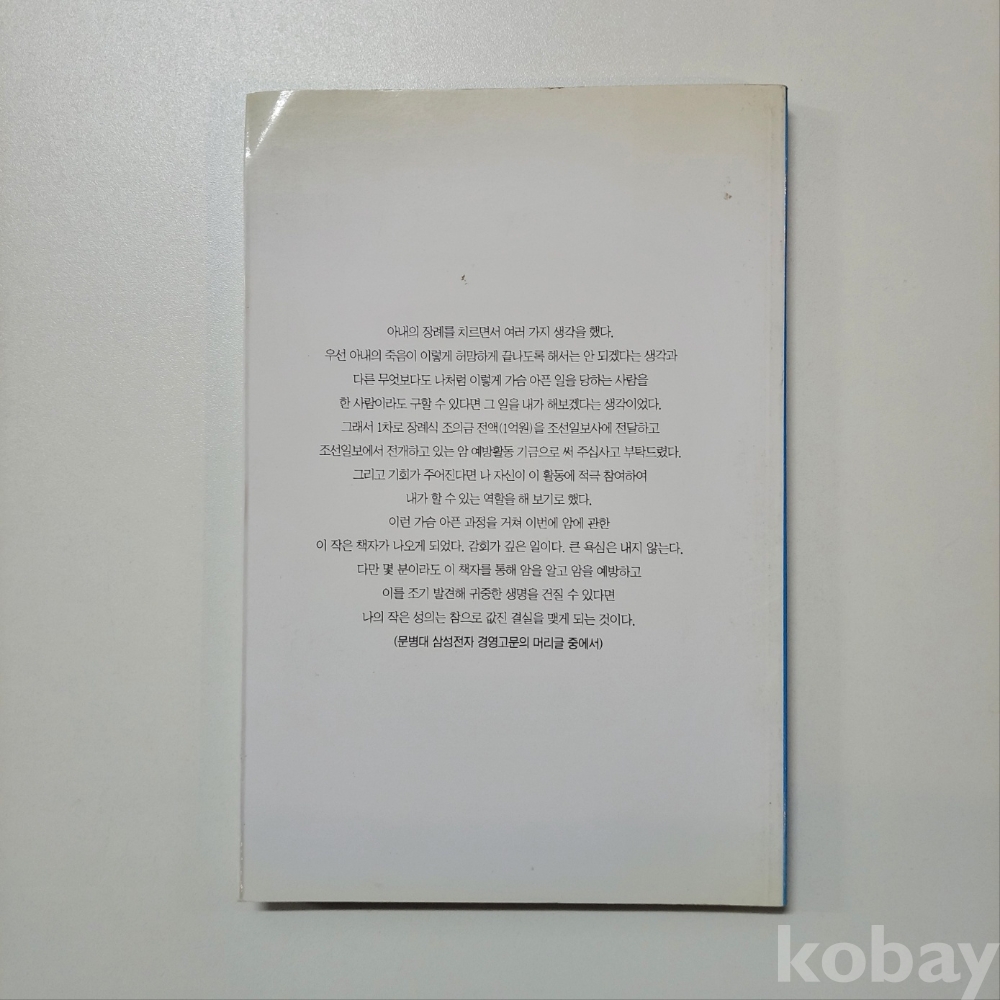 [천원경매] 암 알면 이긴다 (김진복/조선일보사) : 중상급/서고-동08
