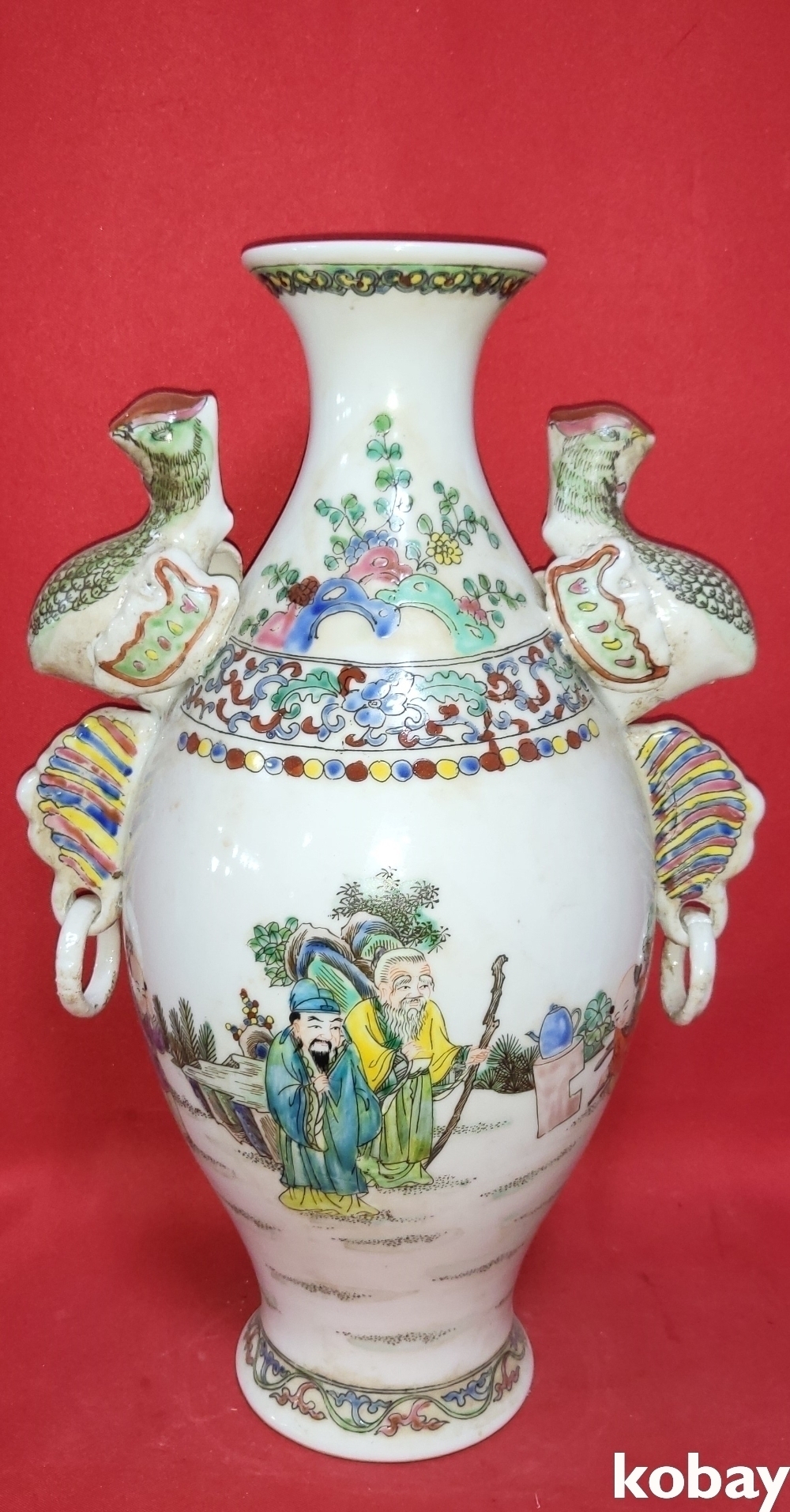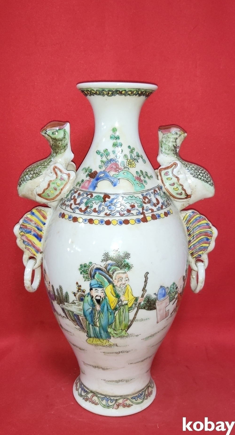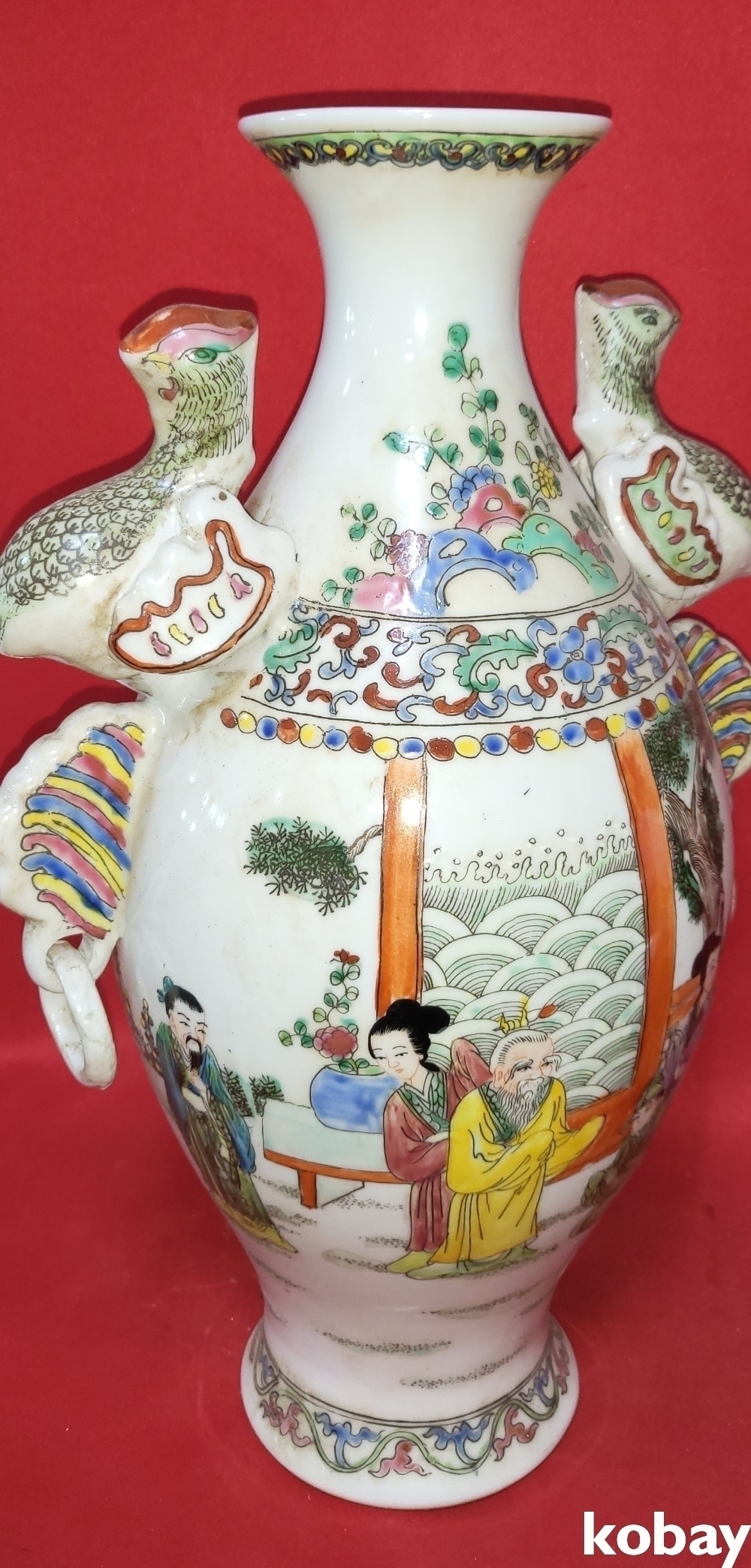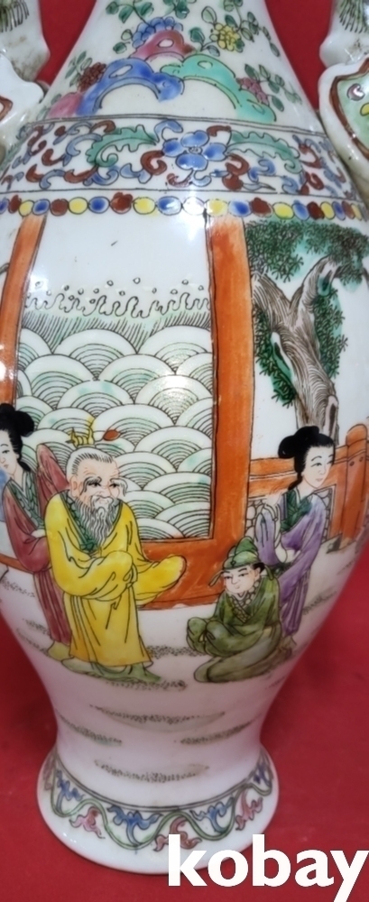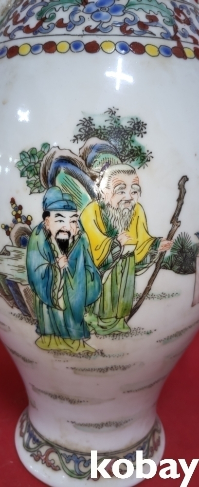 대청건륭연제 분채 십(十) 인물이 그려진 극락조 (極樂鳥)양이 병입니다,
