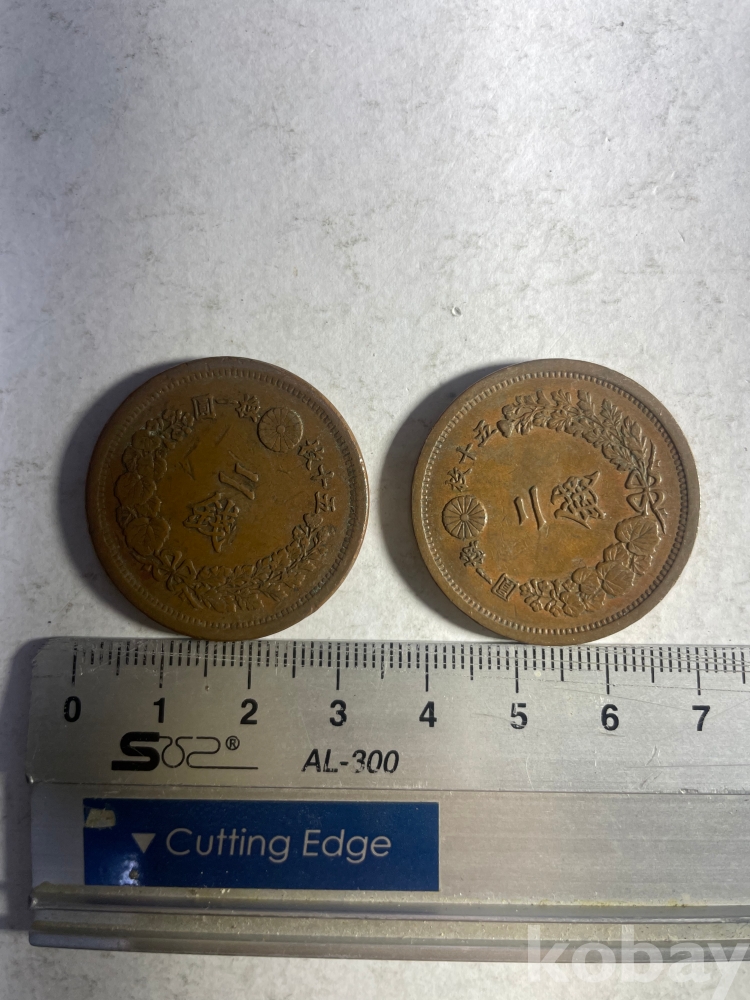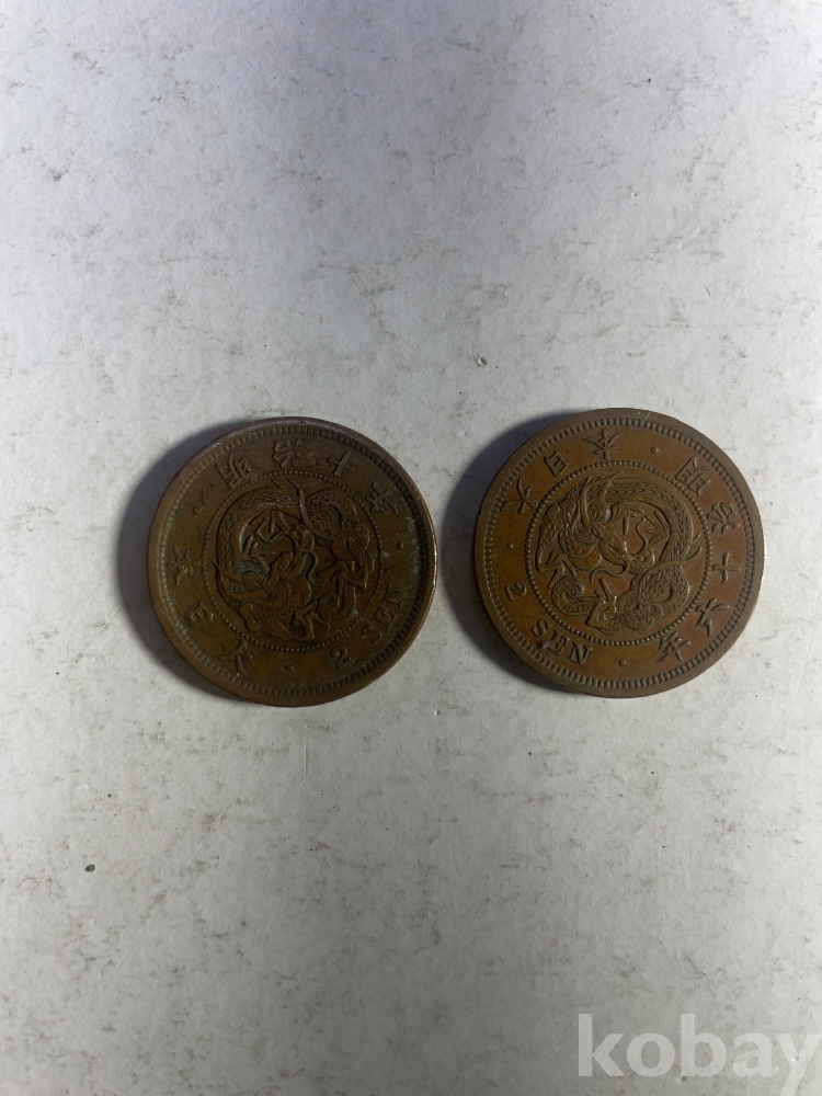 1875년 발행 일본 2전 주화 2개입니다.