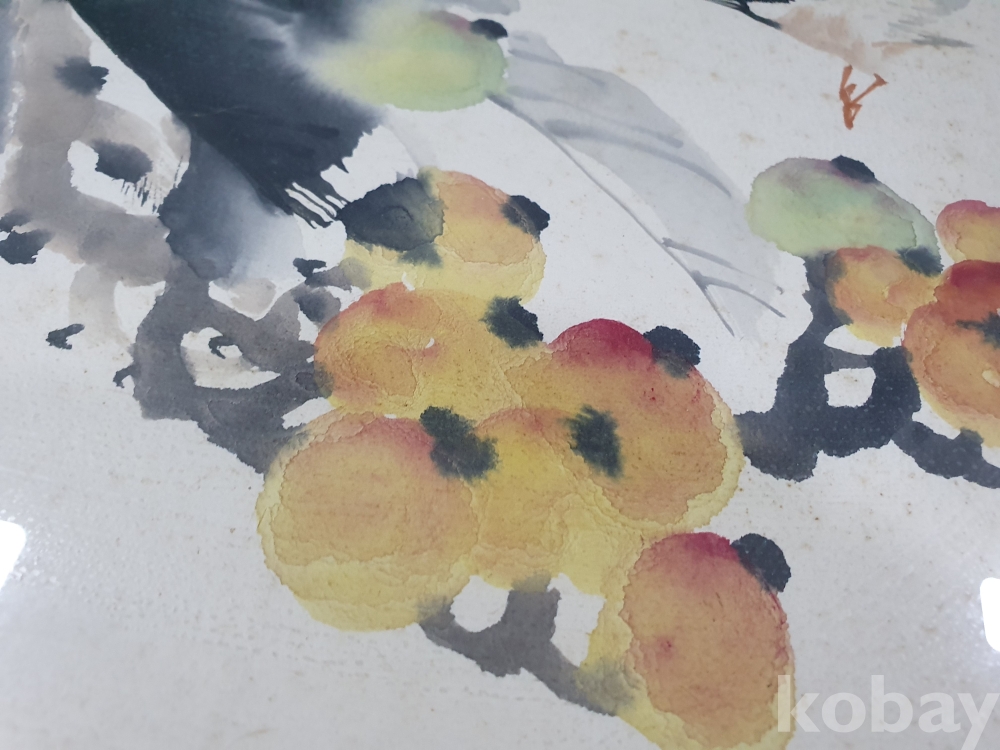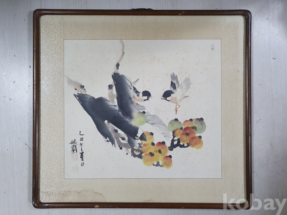 {천원경매} 12-2048 참새와 열매 액자 (52*47.5, 뒷면 찢어짐, 묶음배송 불가, 착불로 배송)