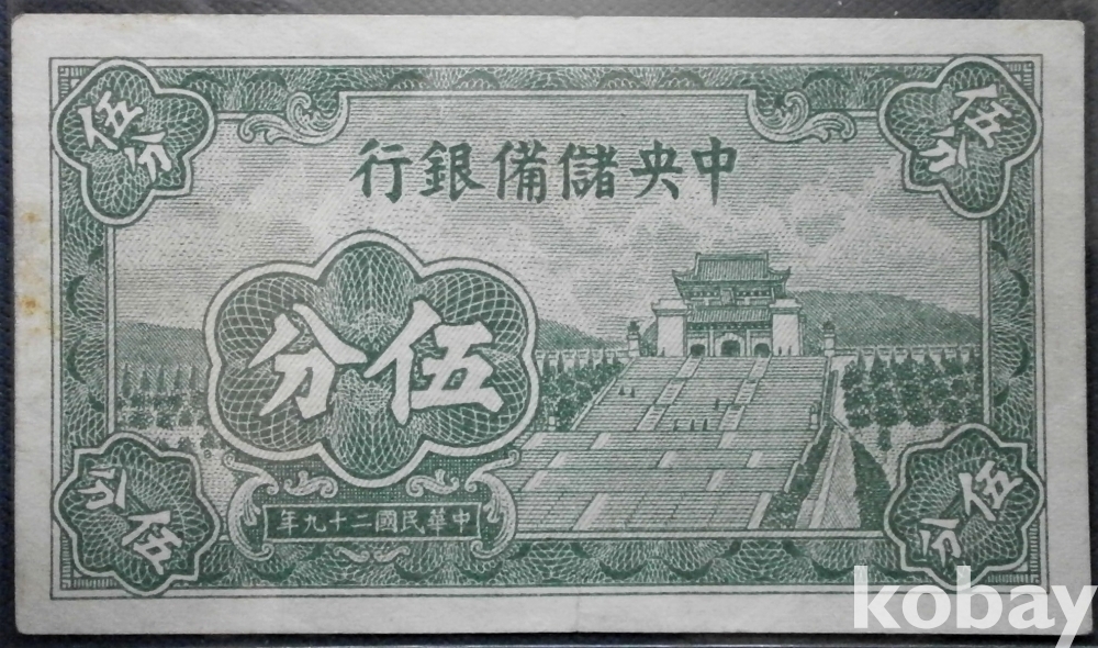 중국 중앙저비은행 5분 민국29년
