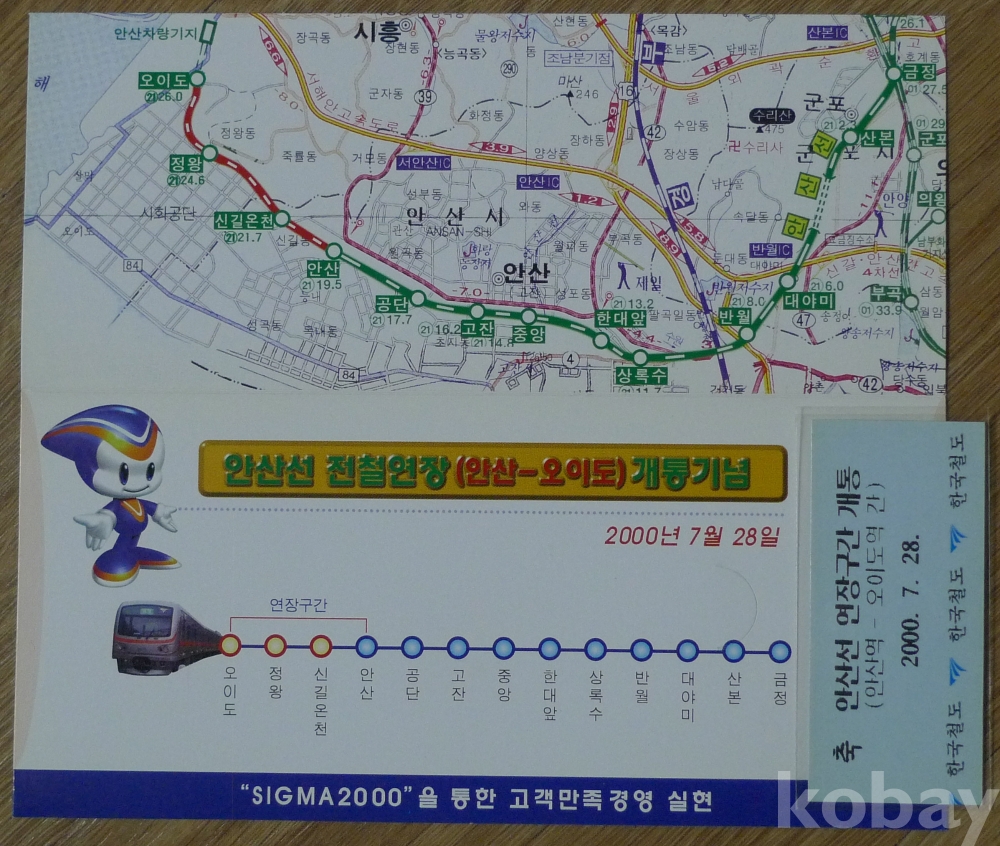 2000년 안산선 전철 연장(안산 - 오이도) 개통 기념 승차권