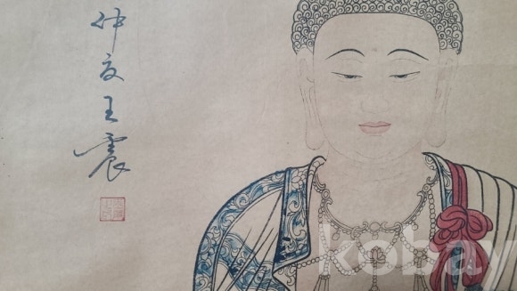 불화 그림이 그려진 족자화 입니다 사이즈도 좋고 작품도 나쁘지 않습니다