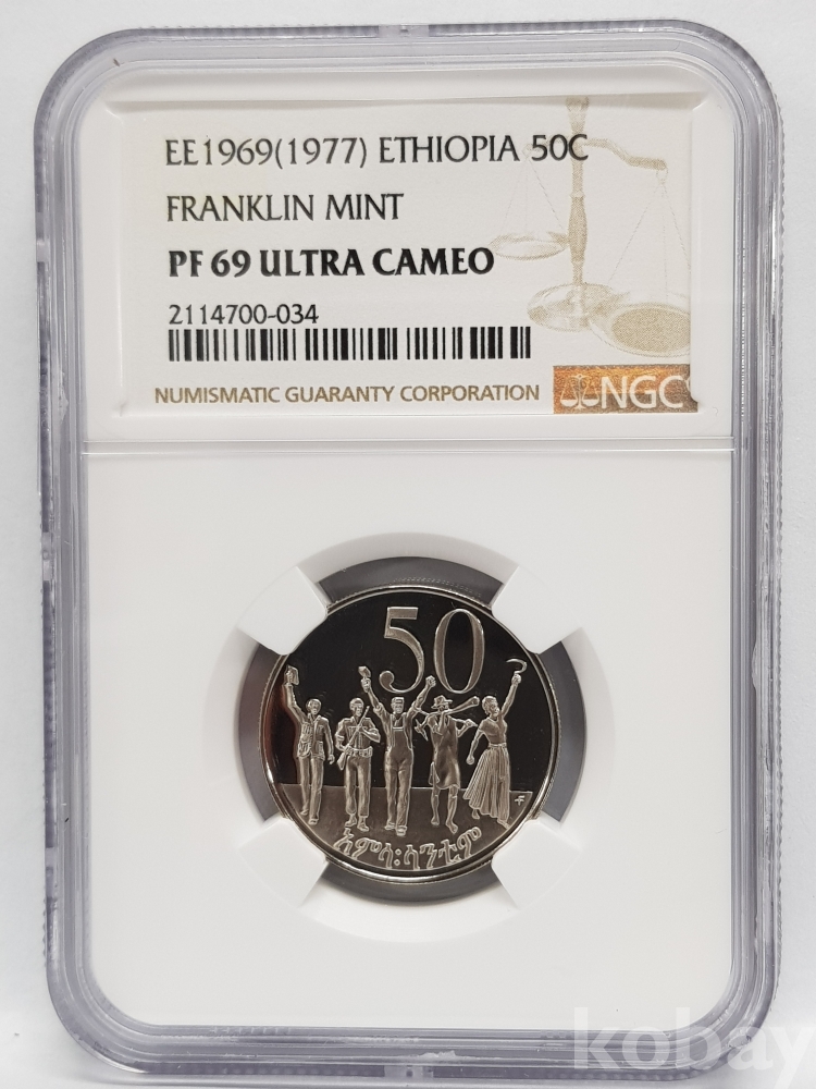 - 1977년 에티오피아 50센트 NGC PF 69 ULTRA CAMEO 그레이딩 주화