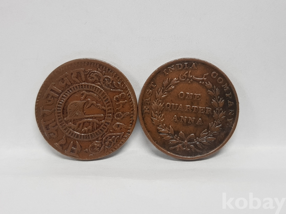 - 인도 1800년대 1파이사, 1/4안나 주화 2종 모음