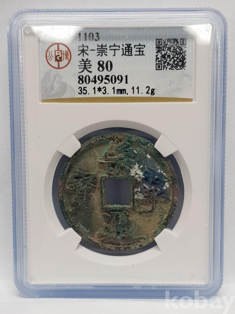 중국 북송 휘종 1103년 숭녕통보 엽전 인증 주화