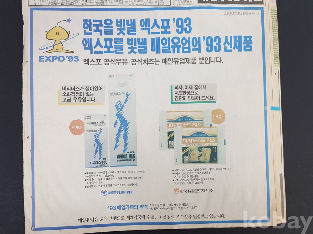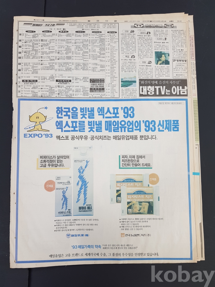 **** 1993.02.03(동아일보)/매일유업 엑스포 공식우유·공식치즈 광고포함/약 24면