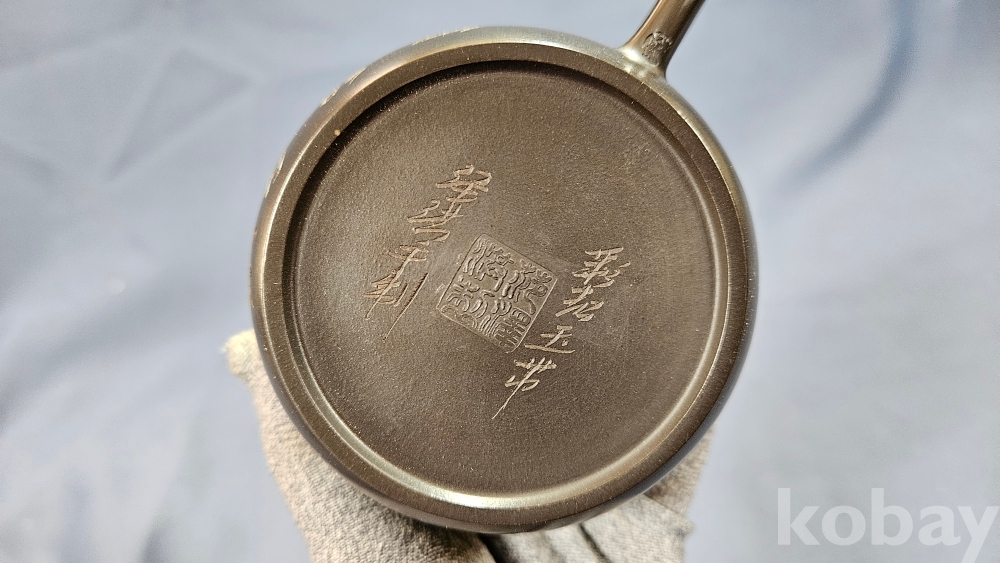 뚜껑안쪽과 밑굽, 몸통내부, 손잡이 아랫부분에 낙관이 찍혀져 있으며