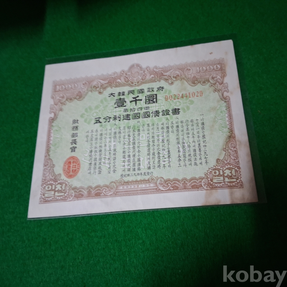 대한민국 1961년 건국채권 14회 1000환 사용제