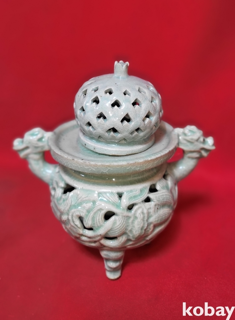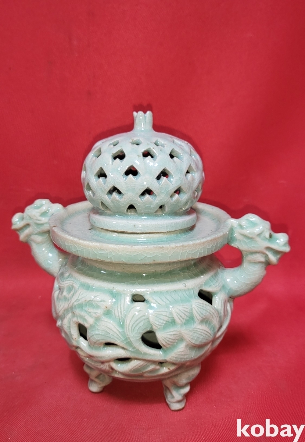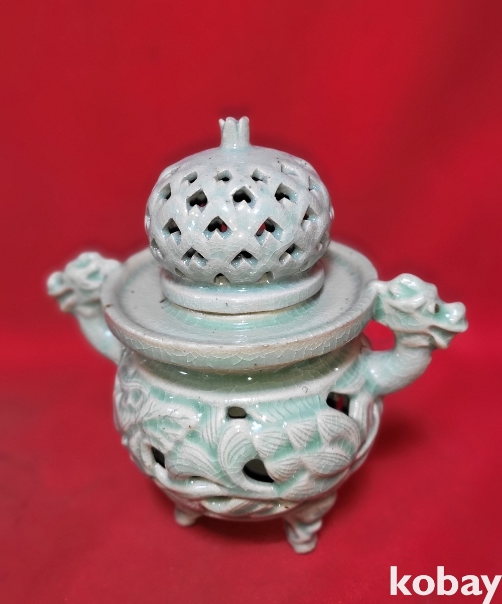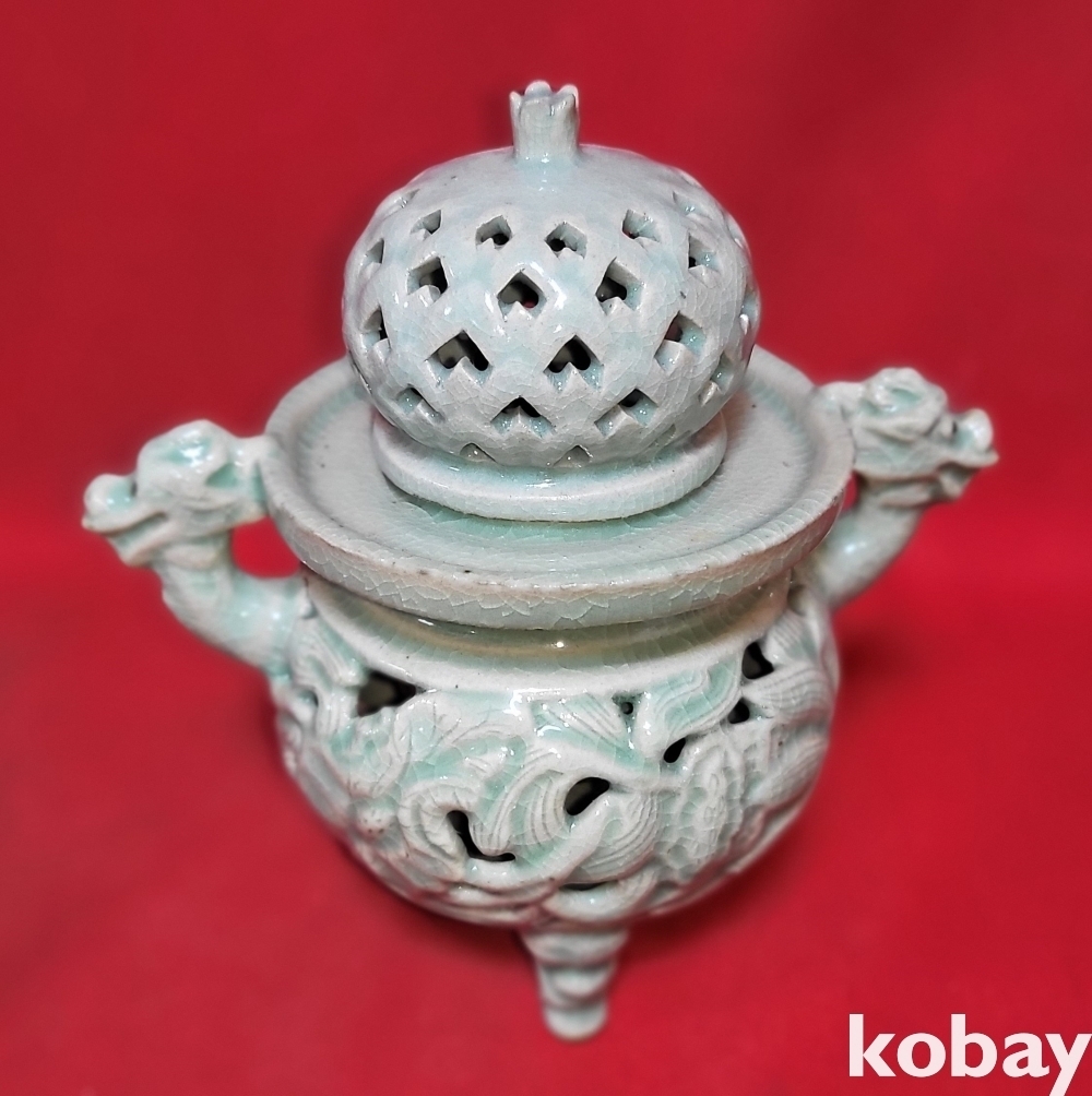 무형문화재 도암 지순탁(陶菴 地順鐸) 作 청자 쌍용문양 향로입니다,
