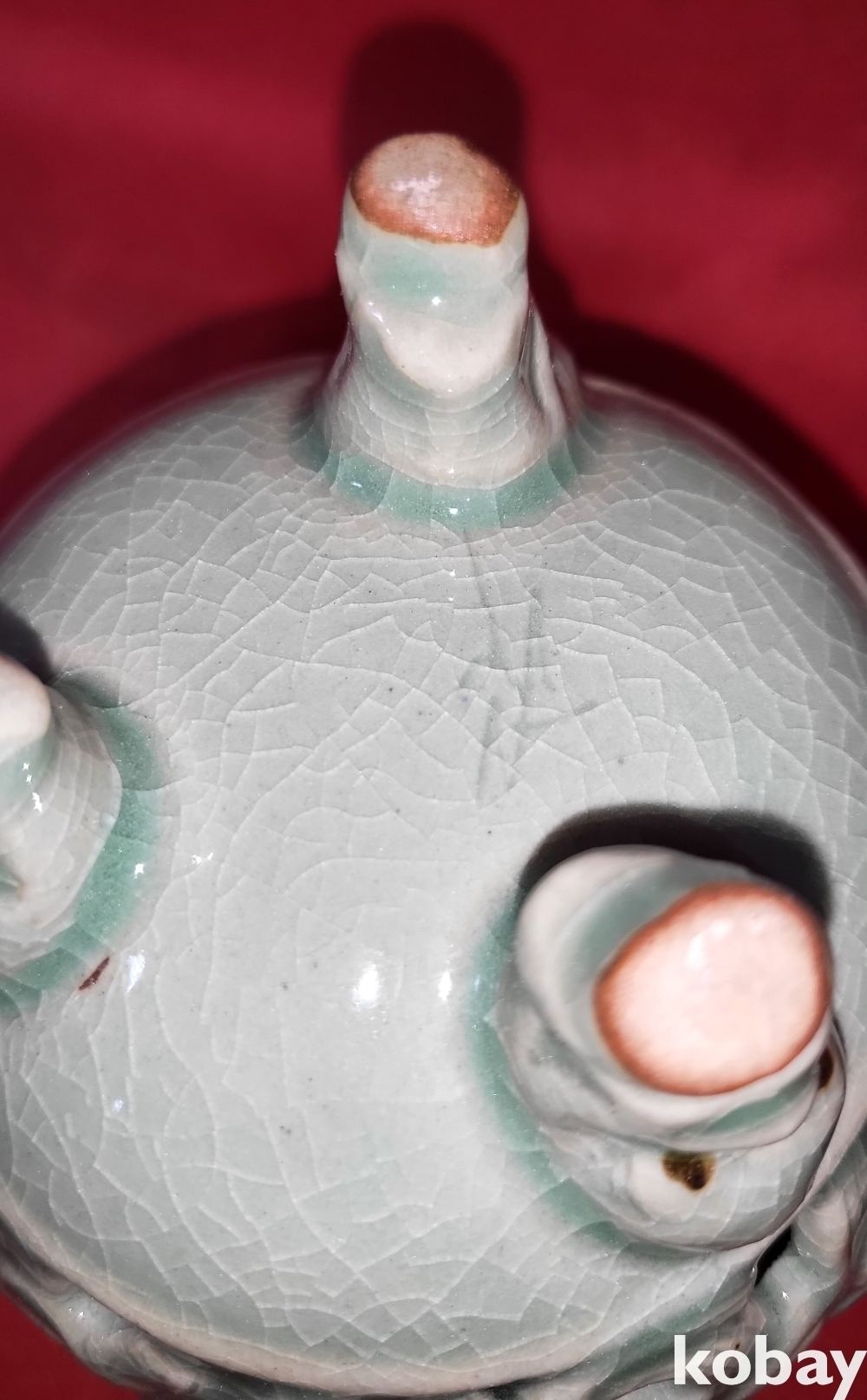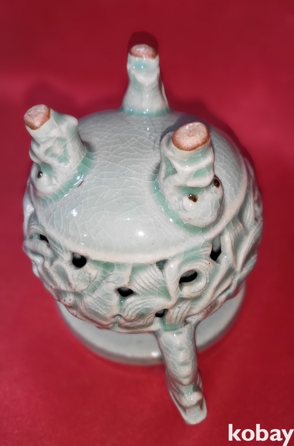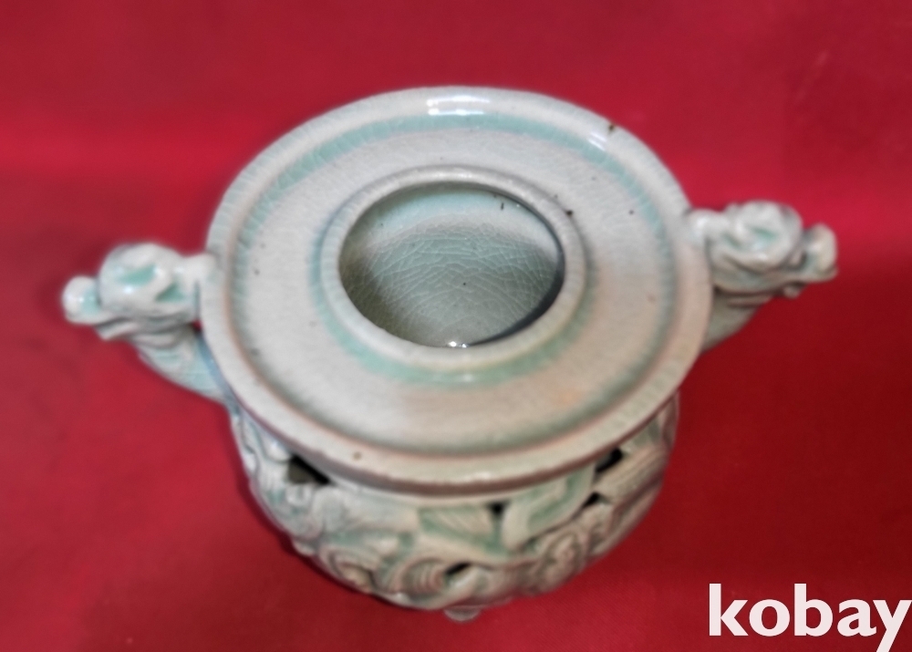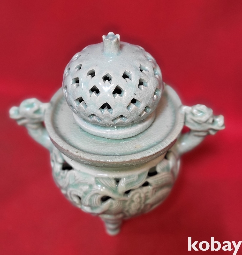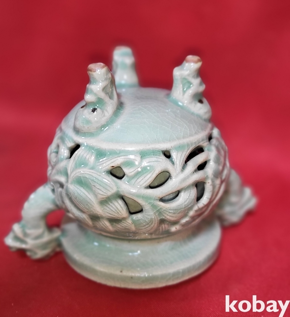 무형문화재 도암 지순탁(陶菴 地順鐸) 作 청자 쌍용문양 향로입니다,