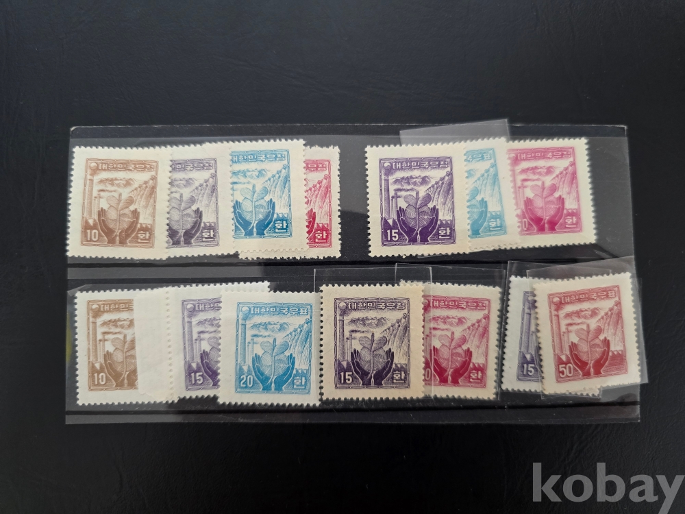 미사용 우표/미사용 우표/55'05.10산업부흥보통14종
