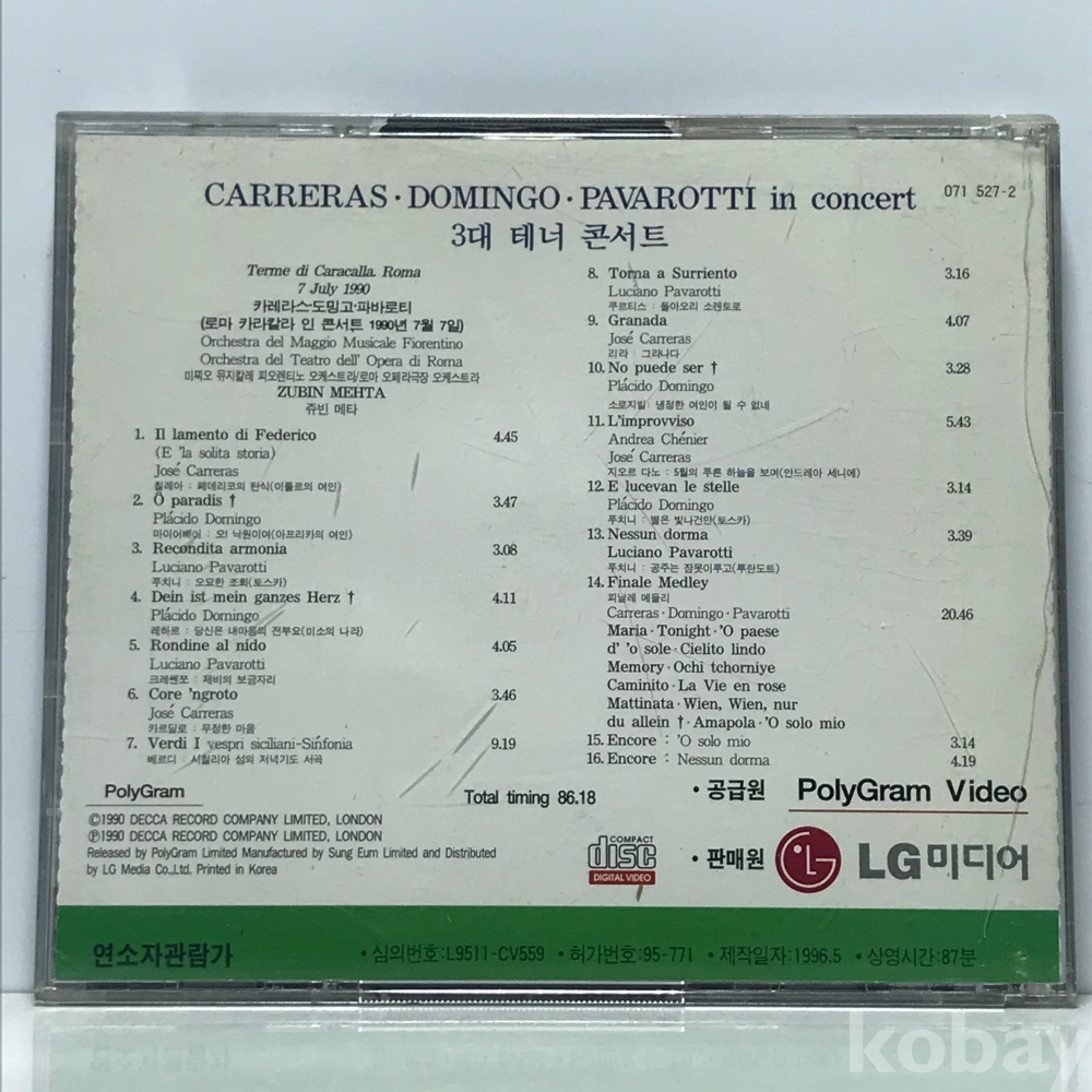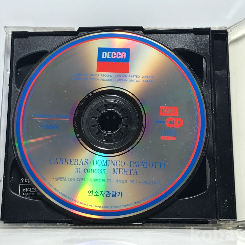 VCD 30,700-26 3대 테너 콘서트 카레라스 도밍고 파바로티 자켓 : 실사 디스크 컨디션 : 개봉 깨끗