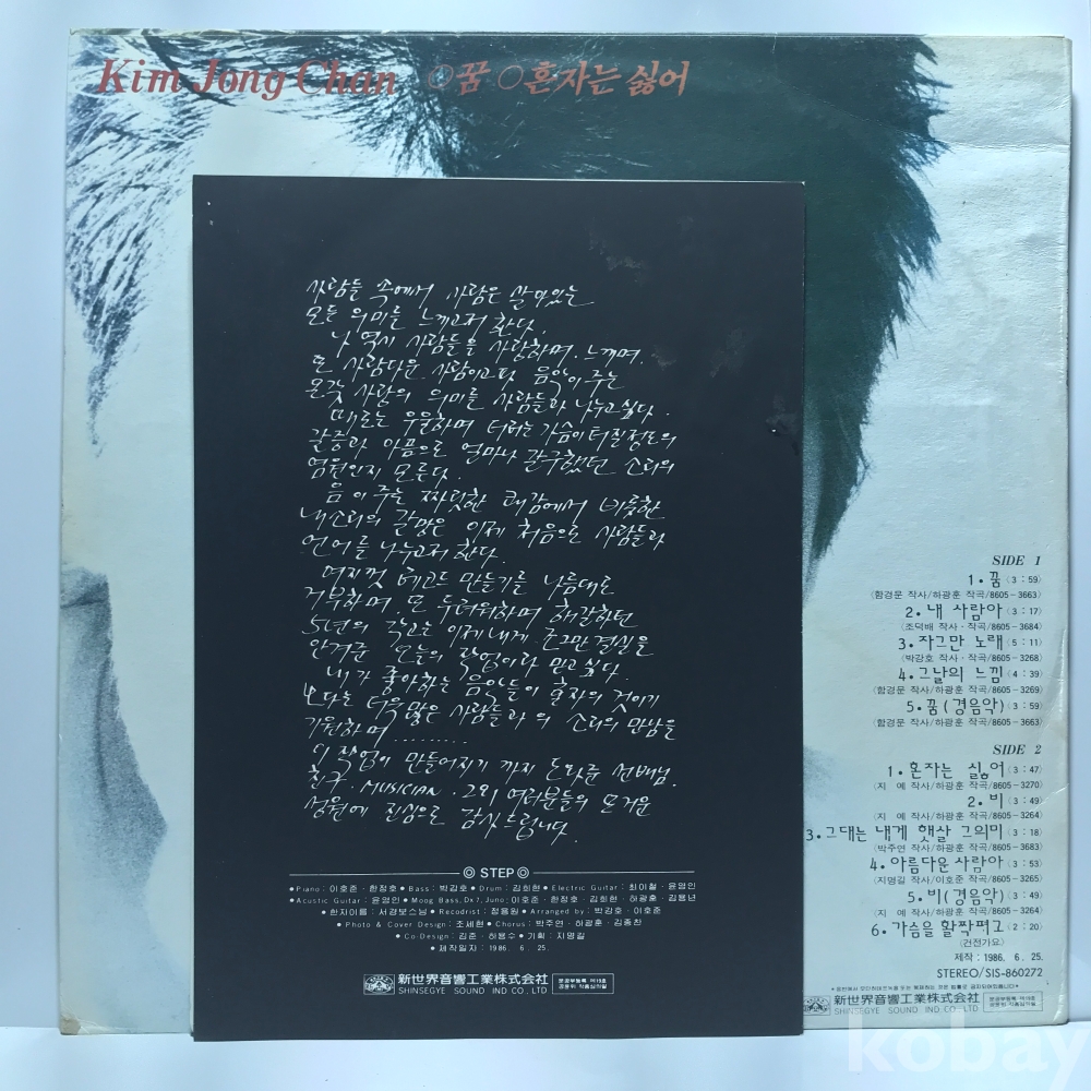 LP 14,400-19 김종찬 - 아름다운 사람아 86 신세계 자켓 EX 알판 EX+