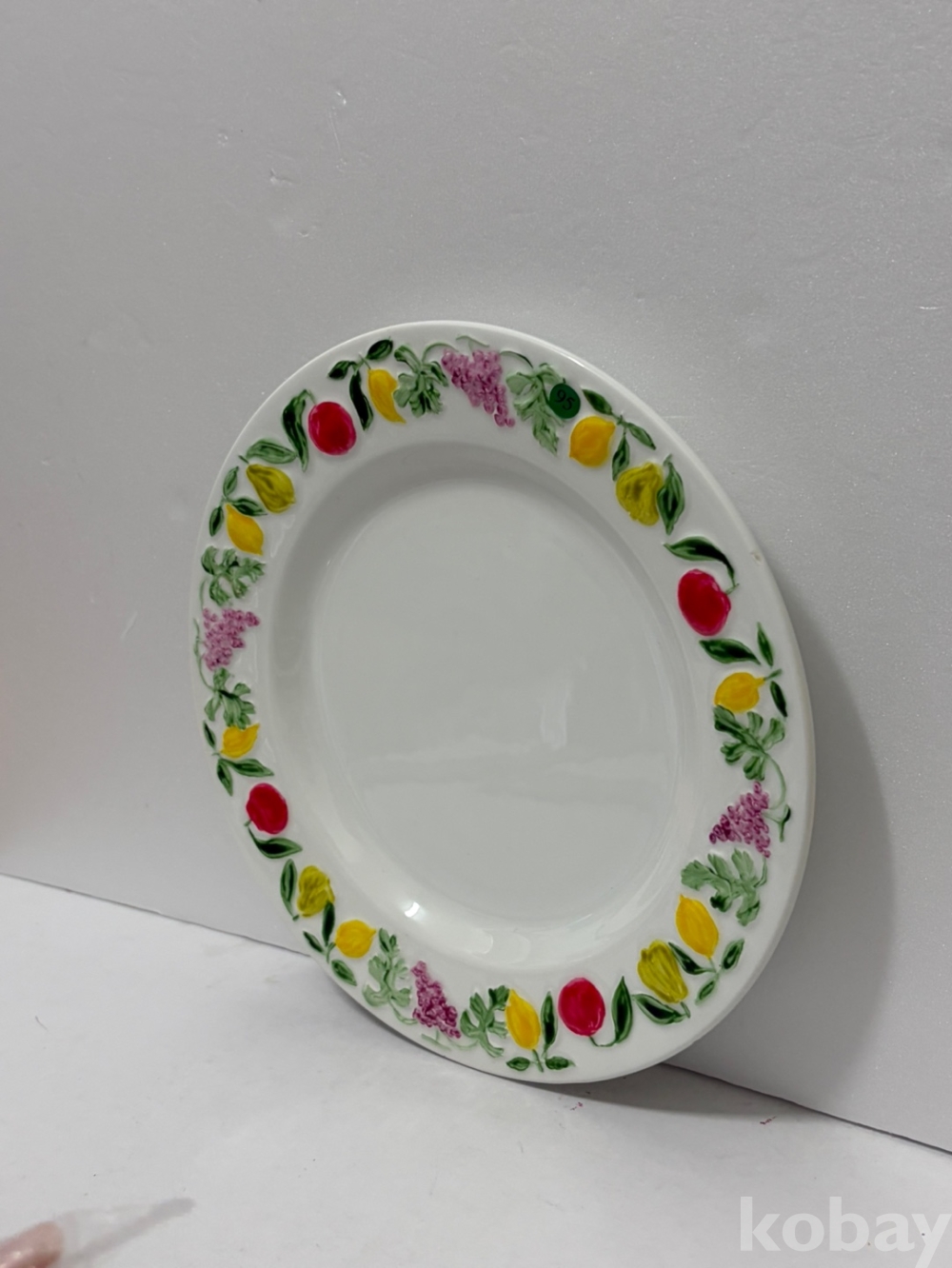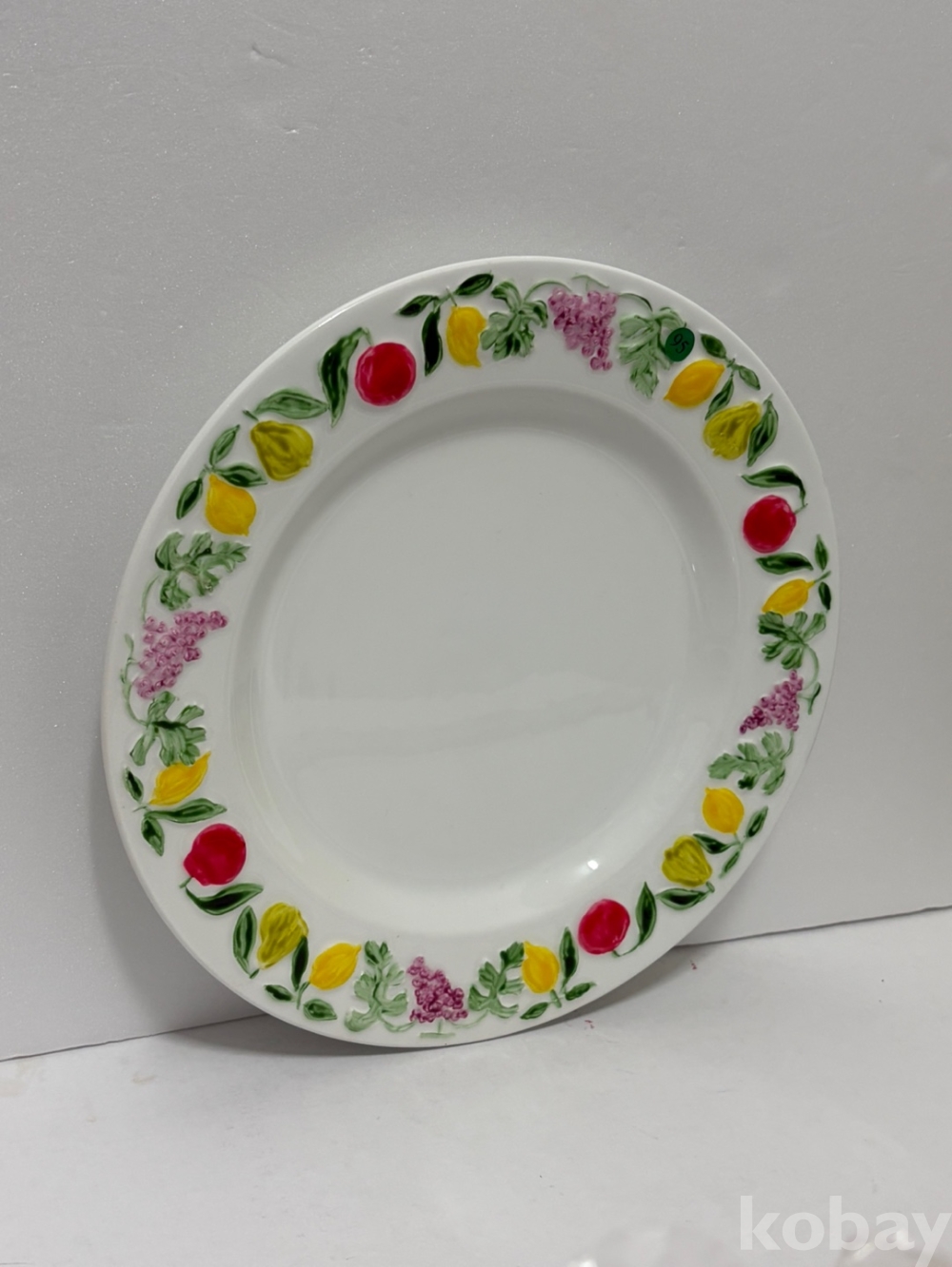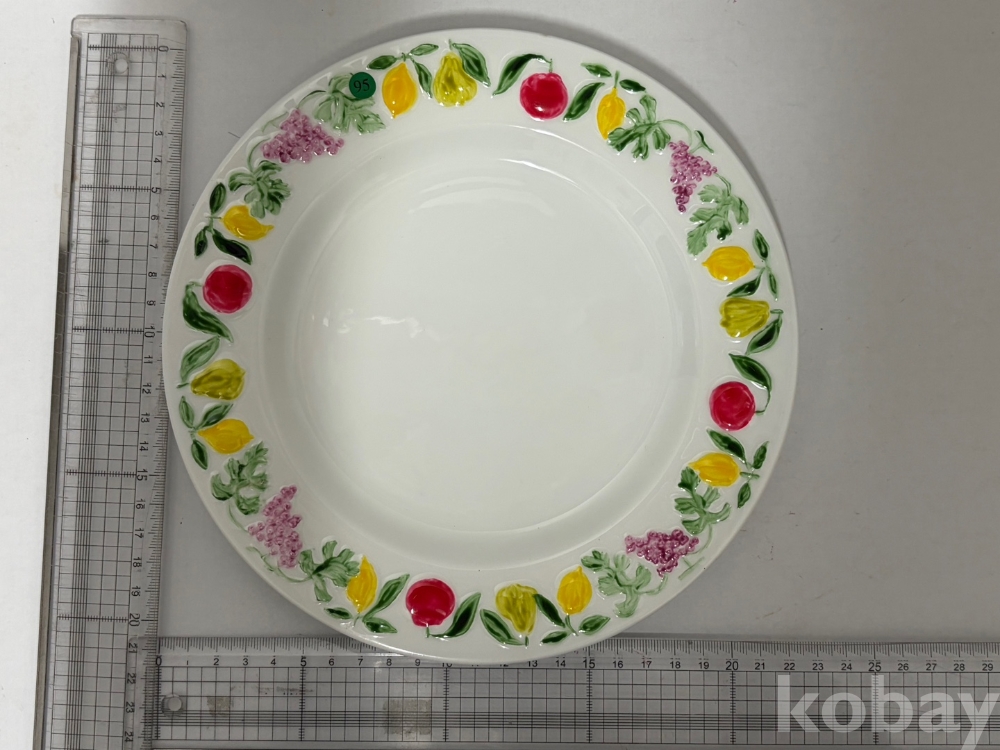 테두리를 따라 과일 무늬가 양각으로 있는 접시입니다.