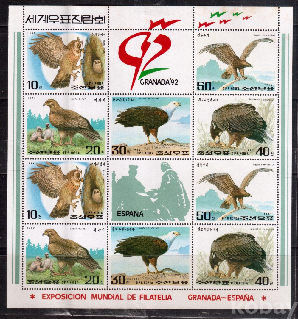 (조류) 북한 1992.1.5 맹금류 sheetlet of 10+2 labels MNH