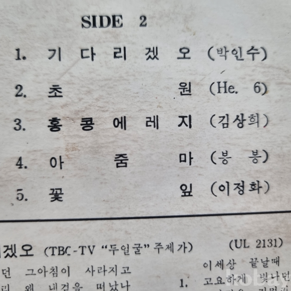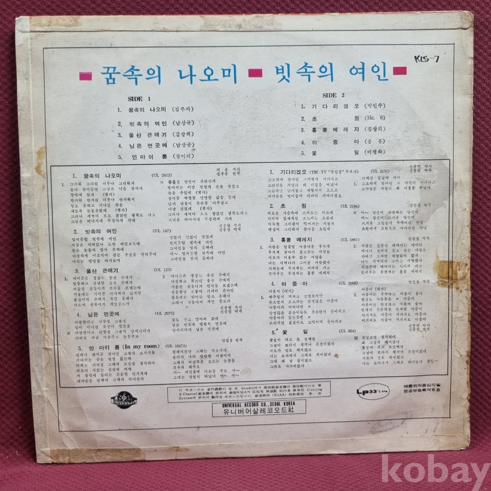 | 자켓상태 | VG : 주름, 접힘, 모서리 찢김 다수 | 음반상태 | EX : 재생에 영향 없는 가벼운 기스 존재 | 발매정보 | 초반 | 가사지여부 | 무 |