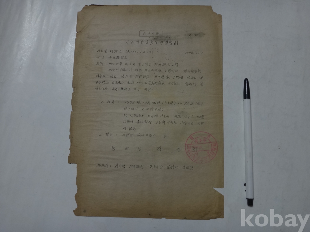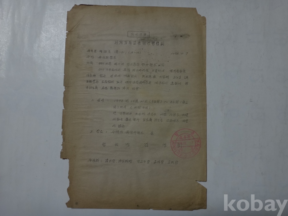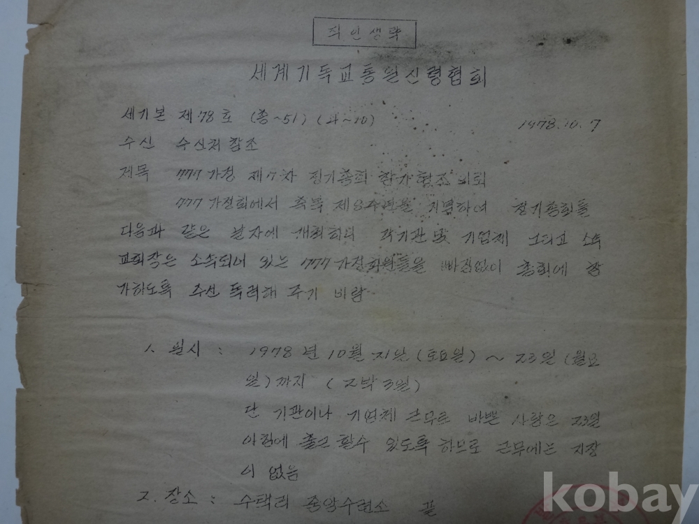 777가정 제7차 정기총회 참가 협조의뢰 (1978년, 세계기독교 통일신령협회)