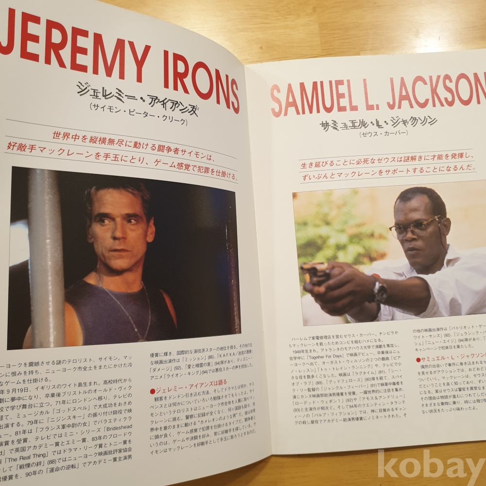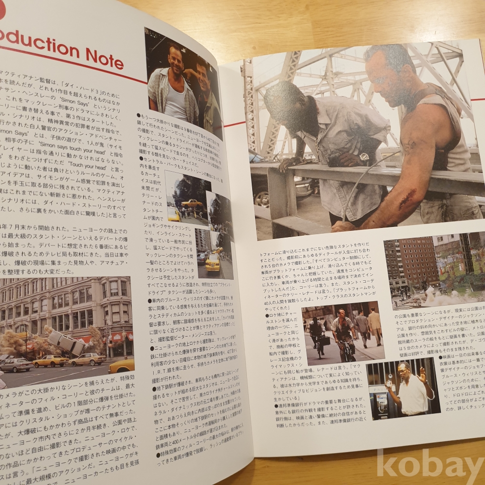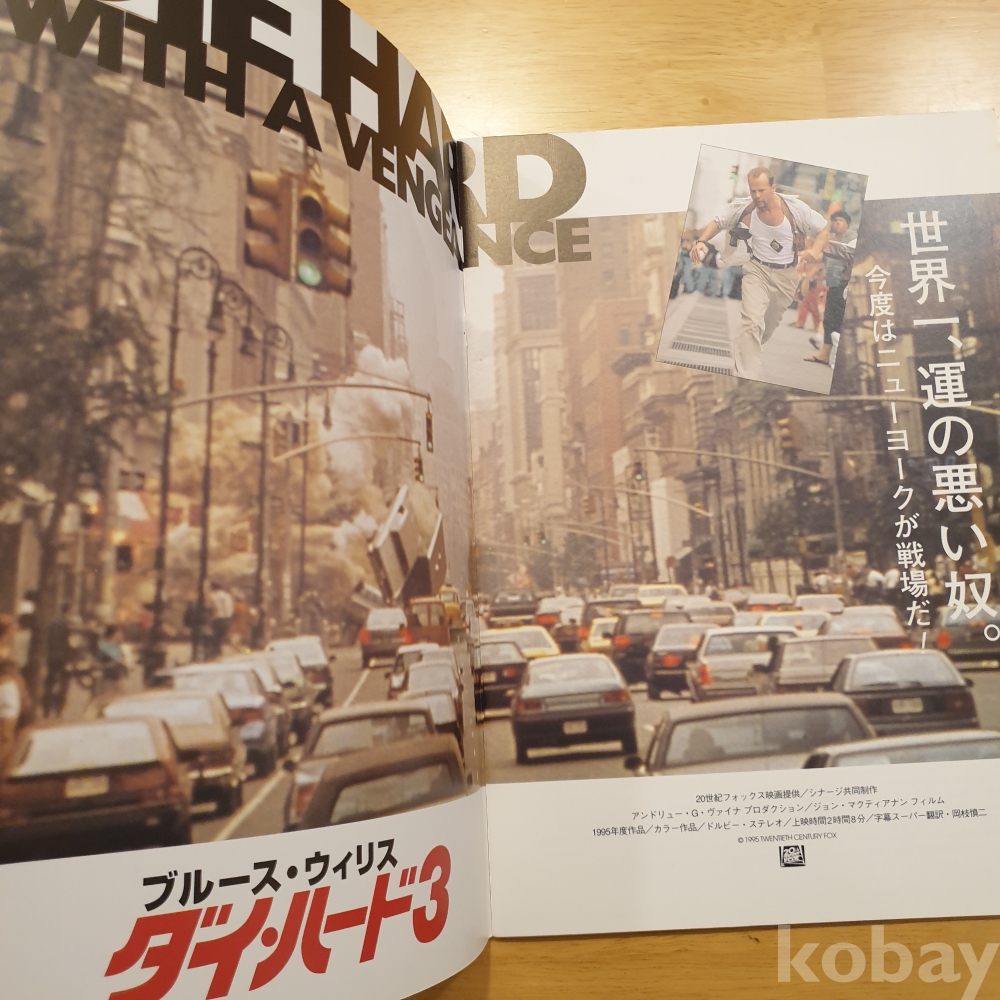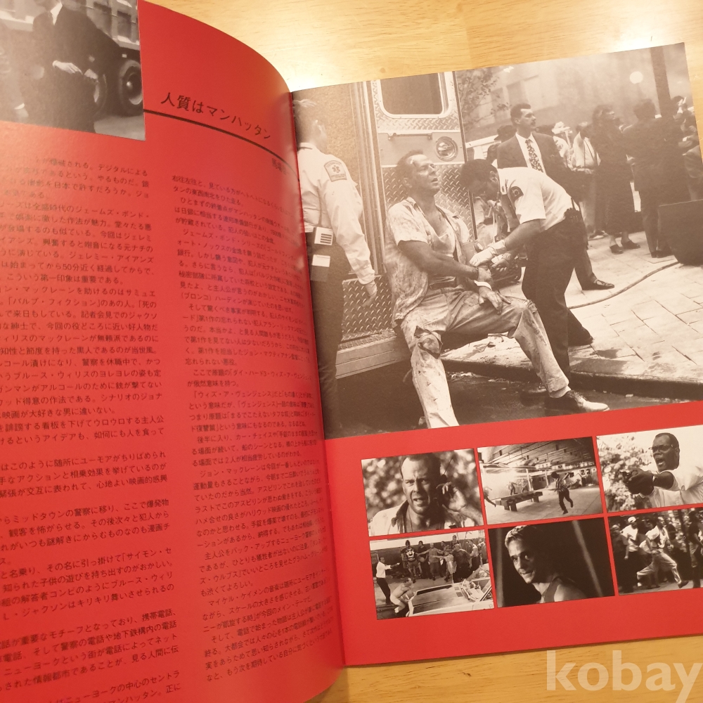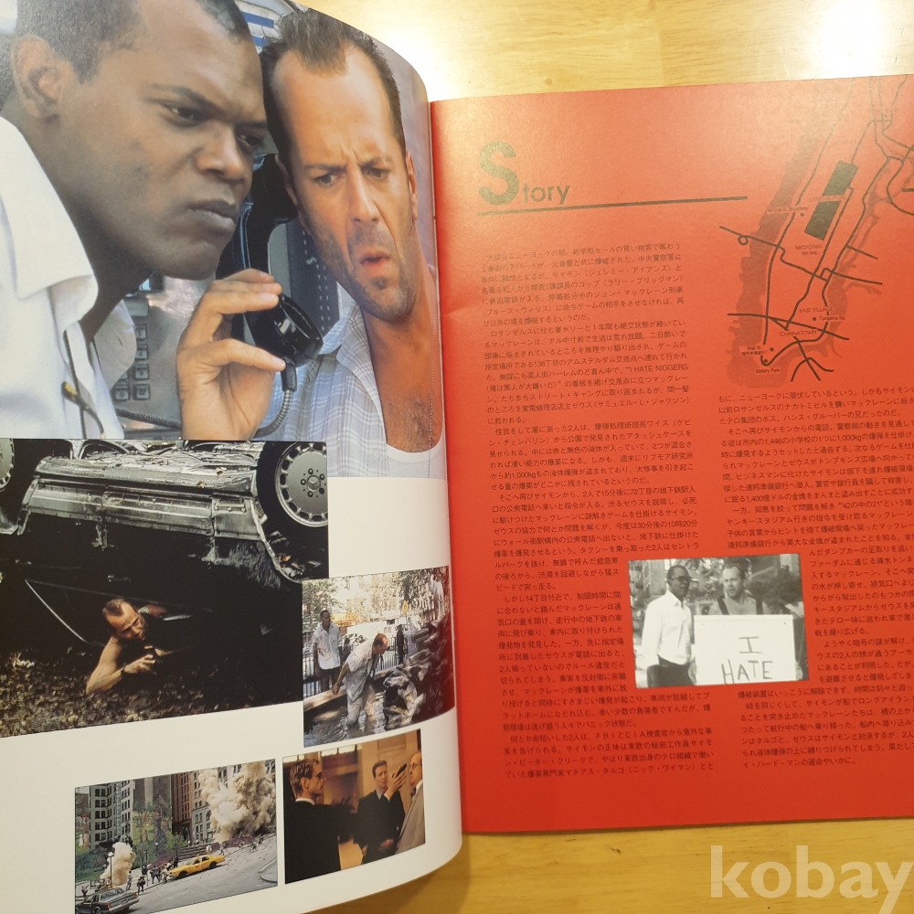 브루스 윌리스, 제레미 아이언스, 사무엘 L 잭슨 주연의 1995년 영화 <다이하드3> 일본영화팜플렛입니다. 일본에서 상영 당시 유료로 판매했던, 소책자형식의 팜플렛으로 일본어로 영화속 줄거리나 캐릭터, 장면에 대한 소개 등이 담겨있습니다. 사진에 보이는 것처럼 특별한 구김이나 오염은 없습니다. 그러나 미사용품은 아니기에 이로 인한 환불은 불가하며 민감하신 분은 구입 자제 부탁드립니다. 사진 그대로 보내드립니다. 궁금한 점 있으시면 문의주세요.