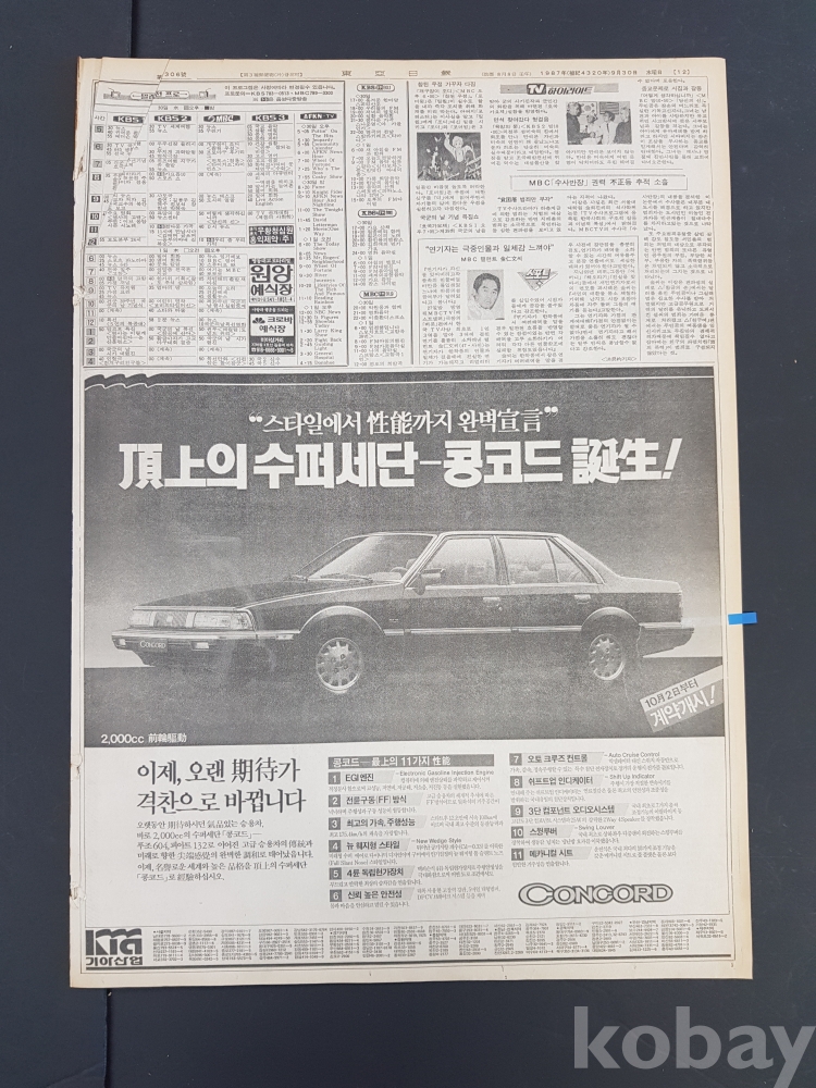 **** 1987.09.30(동아일보)/기아산업 콘코드 광고 등/12면