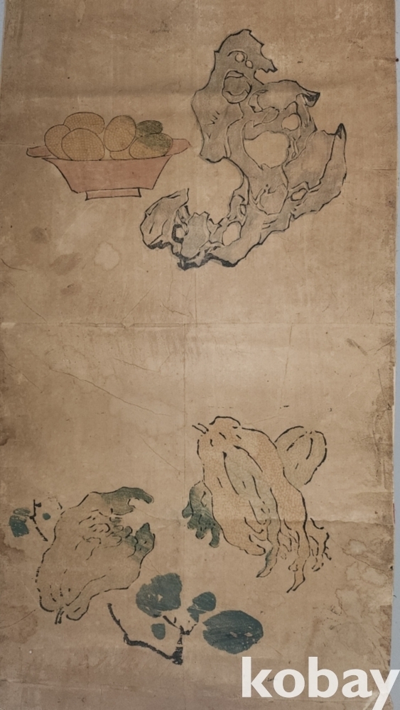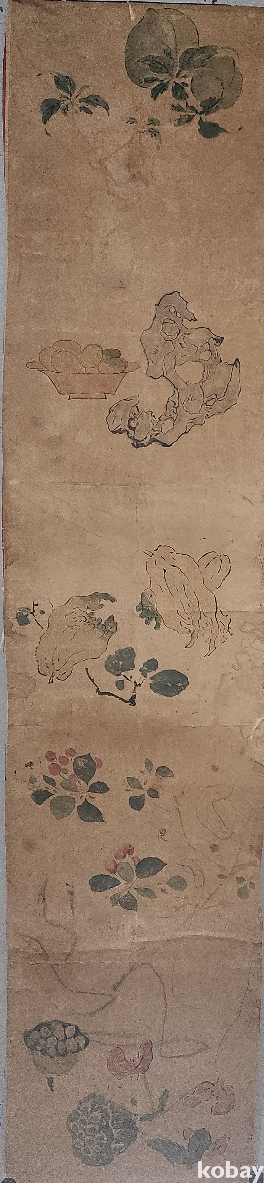 구한말 연대 종이에 당채로 채색된 민화로 명화입니다,