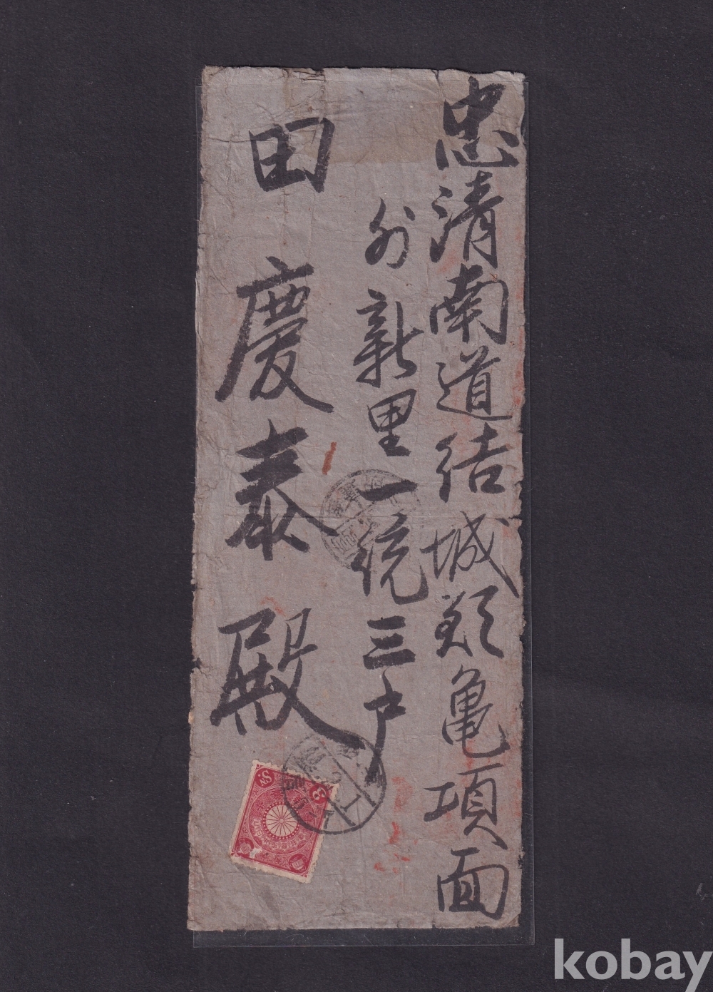 경성에서 충남 홍성군으로 보낸 우편물로 후기 결성우체사의 일부인이 날인된 희귀 자료이다.