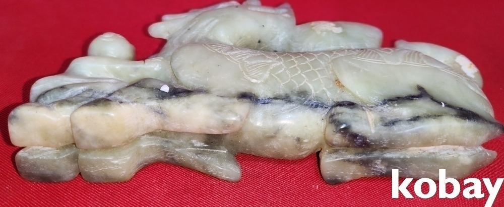 고백옥(古白玉)으로 완성된 용과 원숭이 문양 조각품입니다,