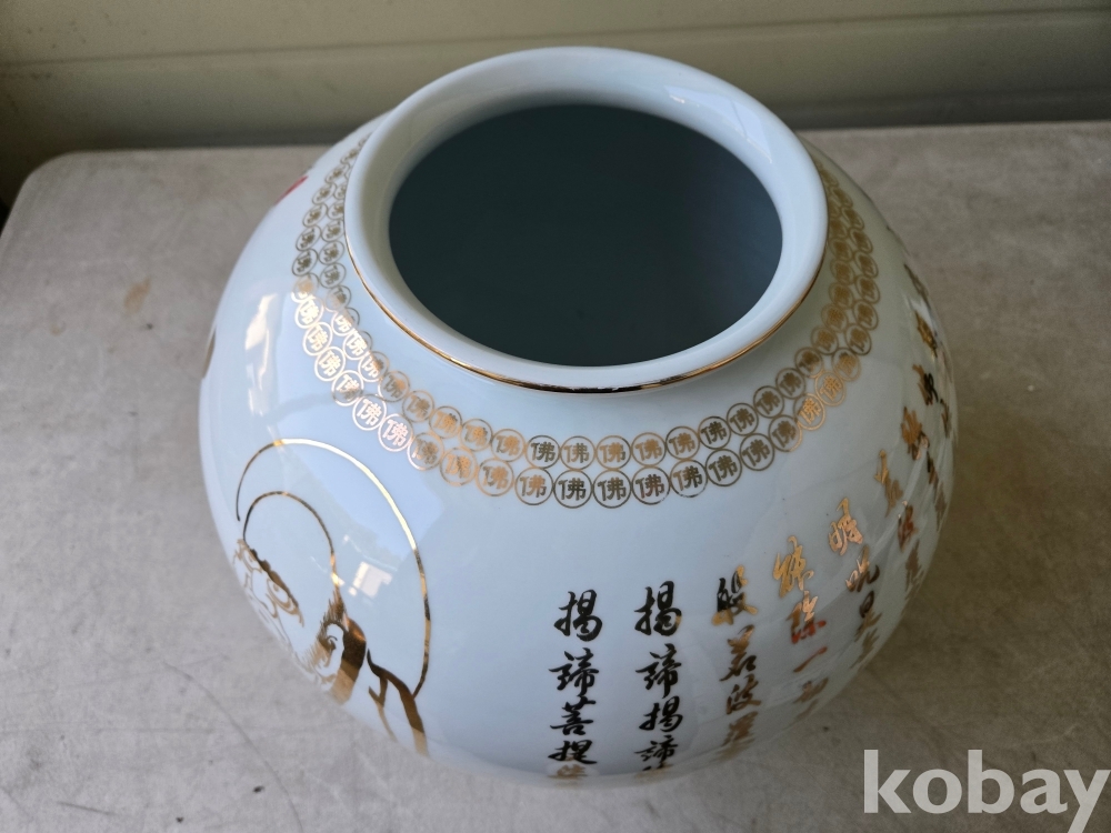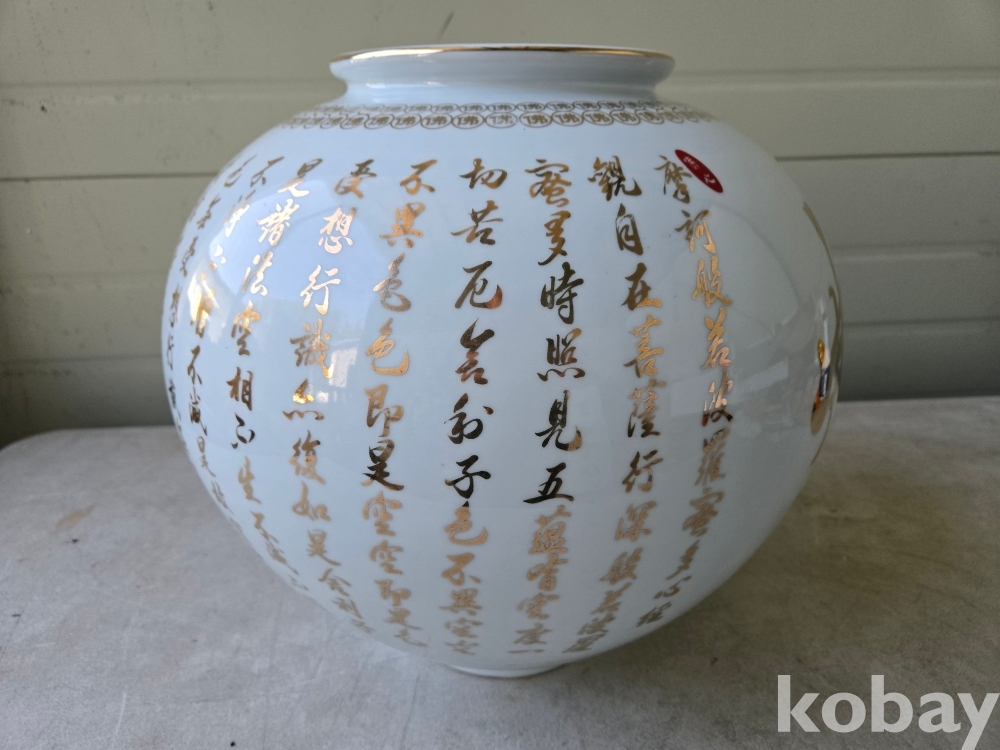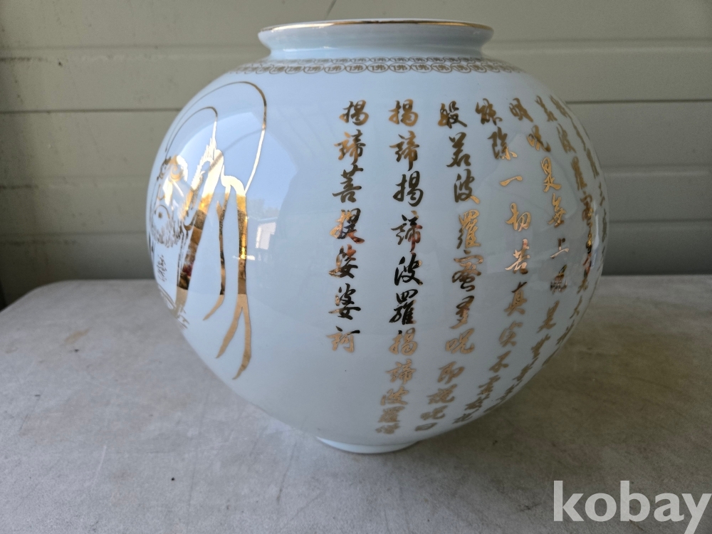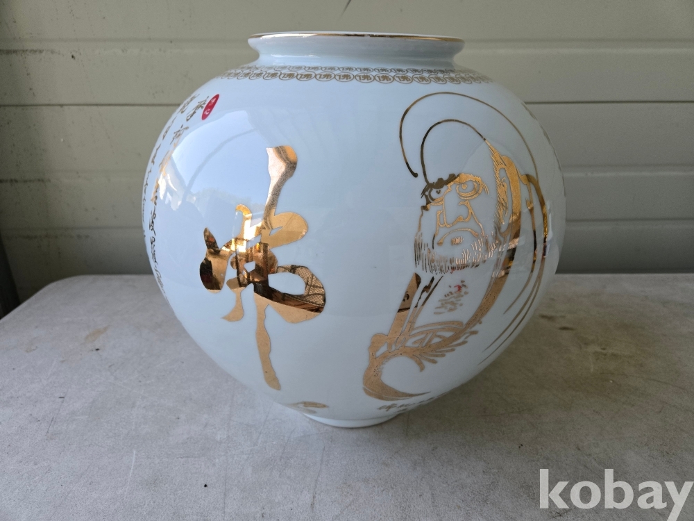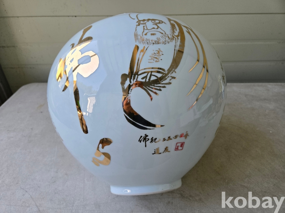 금분으로 달마와 불경 글씨가 있는 달 도자기 입니다.