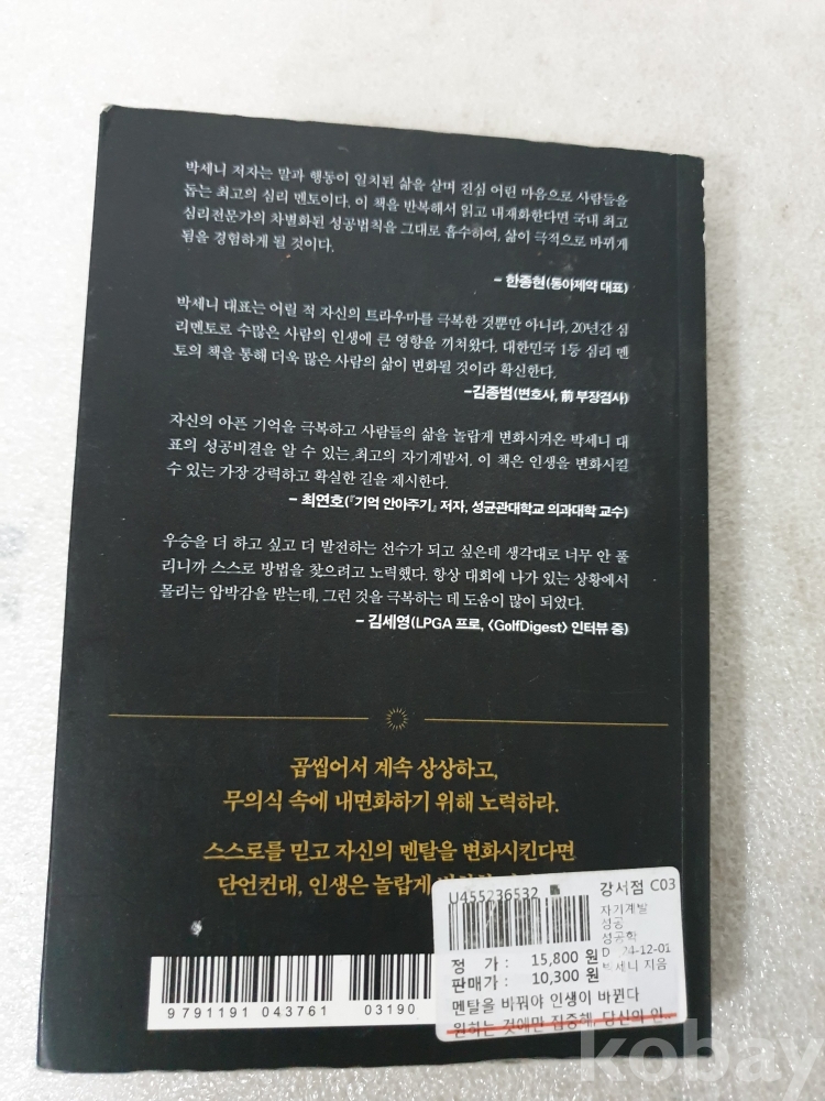 {천원경매} Y-12.1091 (도서) 멘탈을 바꿔야 인생이 바뀐다 (5권이상 묶음배송불가)