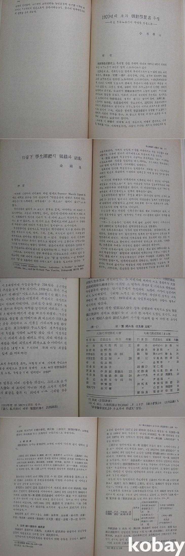 편집부의 머리말이 있다. 3.1운동이나 신간회, 노동자/농민/학생/부녀자 운동, 무장투쟁 등에 관한 한일의 대표적인 학자들 글 10편으로 구성되어 있다. 민주화투쟁 시기 근대사를 운동사의 관점으로 이해하던 대표적인 글들이다.