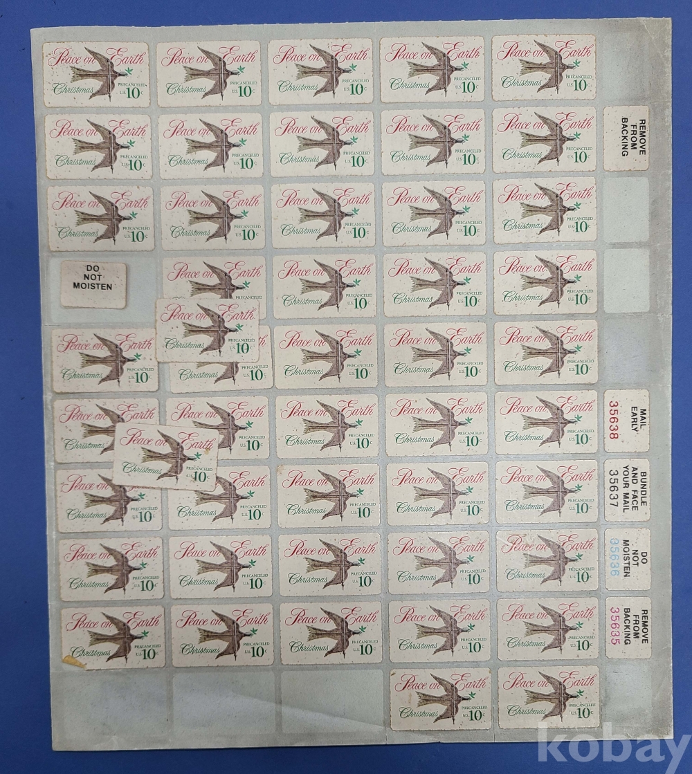 [흥미우표] 미국 발행* 물에 담그면 우표가운데 십자무늬(+자무늬)가 파열되어 재사용을 방지하는 Christmas 우표 전지, 실체봉투 등