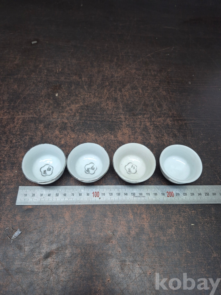 1960년대 고려라고 씌어져 있는 백화 청주잔 4점 5.5*5.5*3
