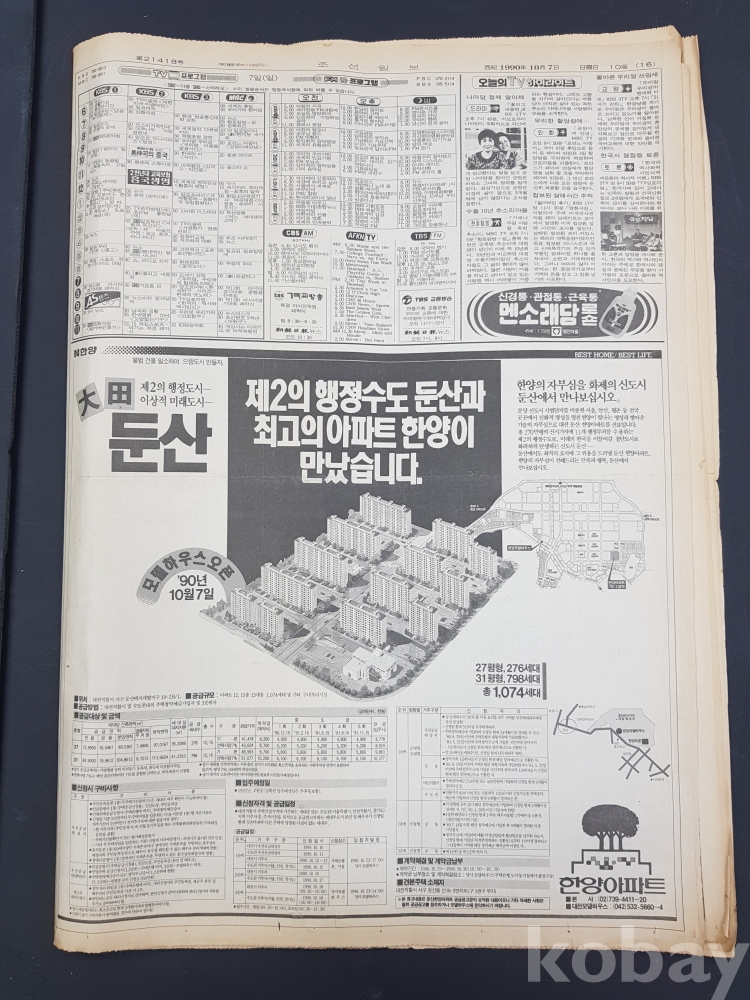 **** 1990.10.07(조선일보)/한양아파트 대전둔산 모델하우스오픈 등 광고포함-약 16면