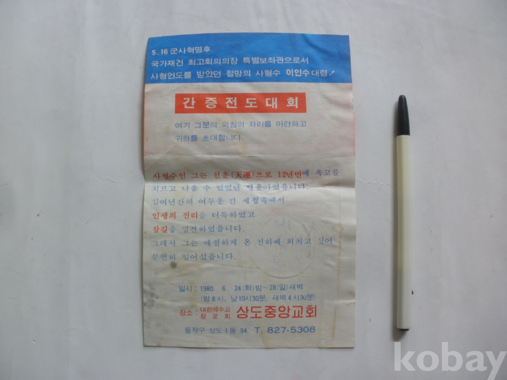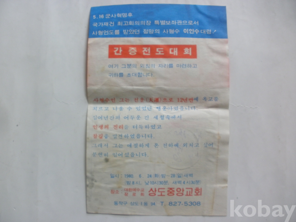 들으라!!! 어떤 사형수의 외침 - 5.16군사혁명후 국가재건 최고회의 의장 톡별보좌관 사형수 이인수 대령 (1980년, 간증 전도대회, 상도중앙교회)