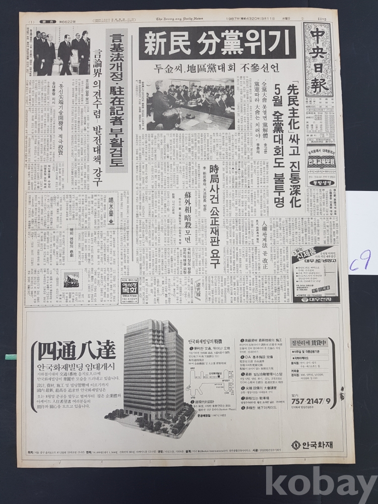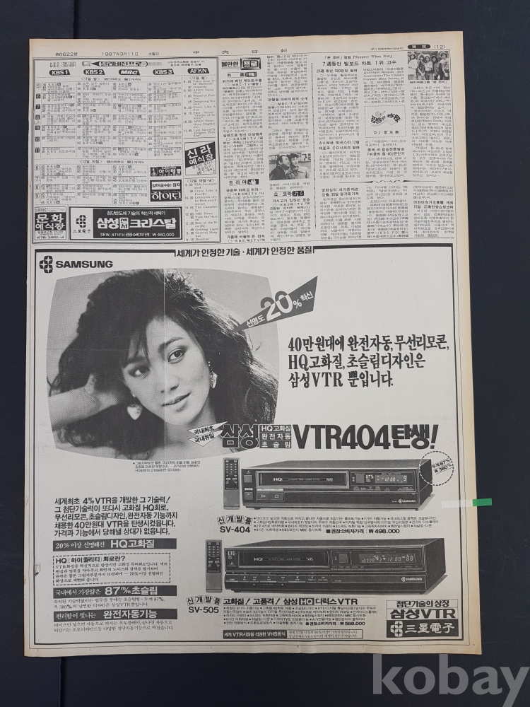 **** 1987.03.11(중앙일보)/삼성전자 삼성VTR 광고포함/약 12면