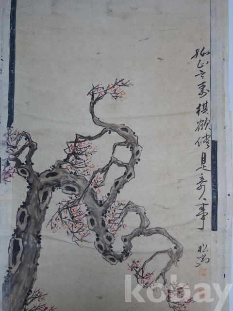 비단에 그린 작품으로 작은 구멍들이 다소 있음.