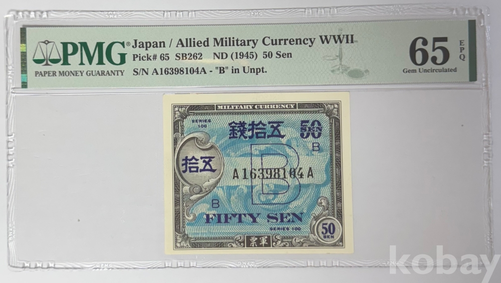 일본/2차대전기 1945년 50전 PMG 65 EPQ